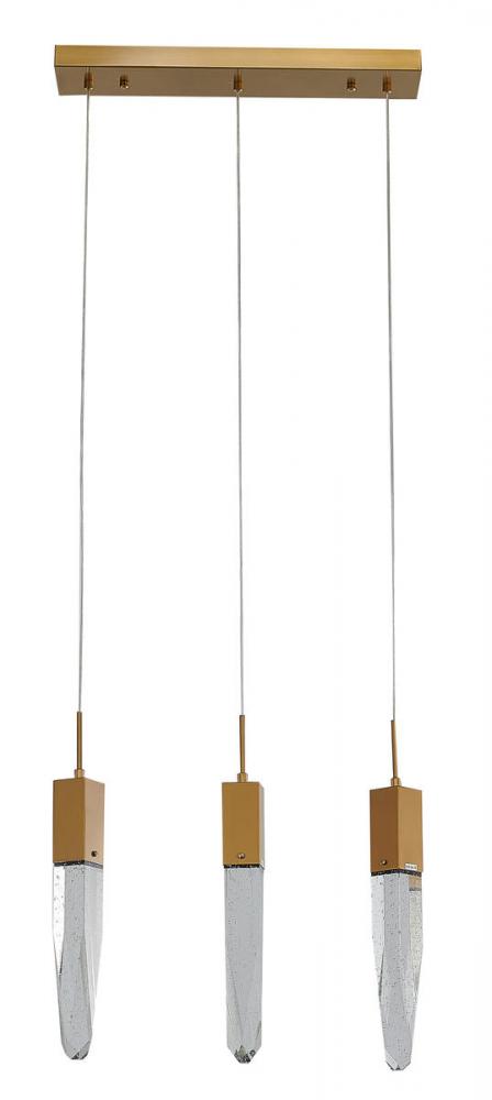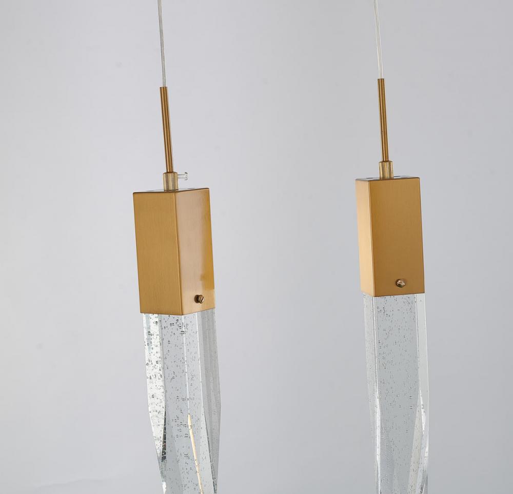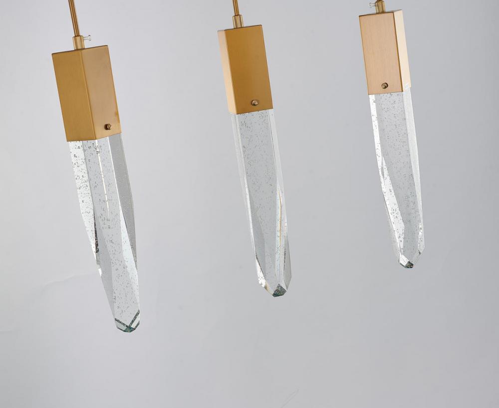 This exquisite island lighting is in a gold finish. The frame is made out of metal, and it comes with hanging clear iceberg bubble crystals. The length of cords can be adjustable and make this fixture suitable for most ceiling heights