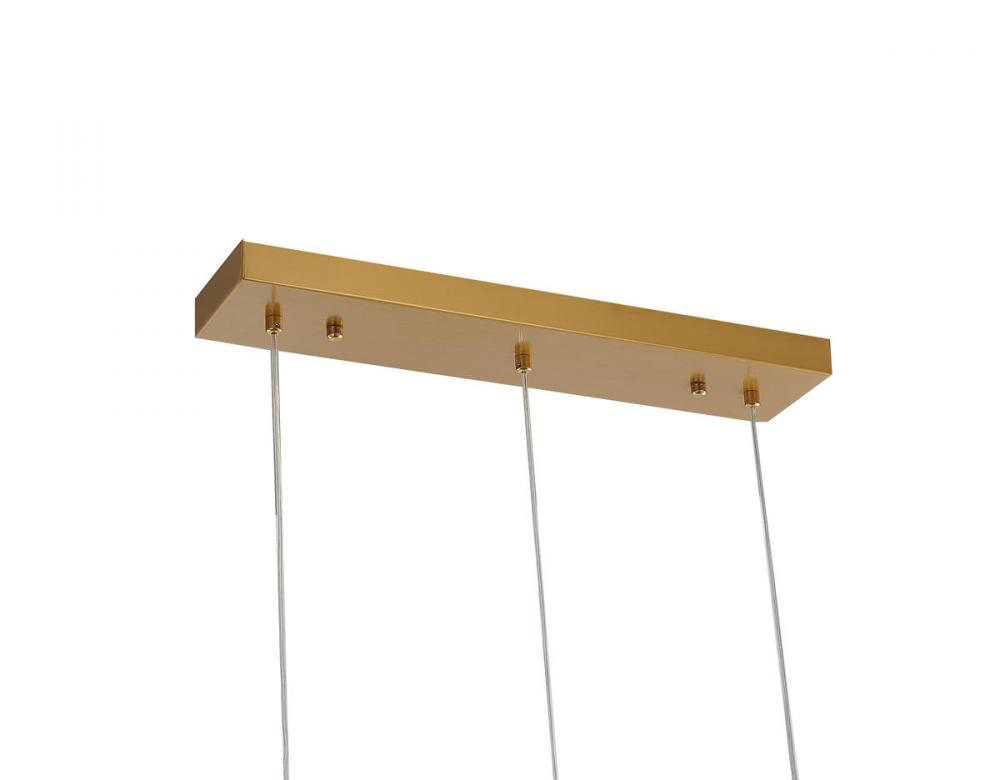 This island lighting has a gold metal frame