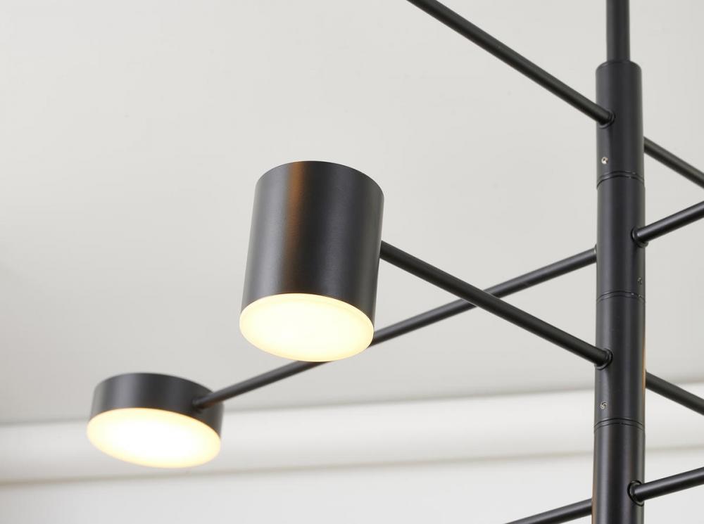 This exquisite four tier LED lighting is in a black finish. The frame is made out of metal, and it comes with white diffusers. The arms can be moved to different directions. You can create a timeless feel while using modern forms