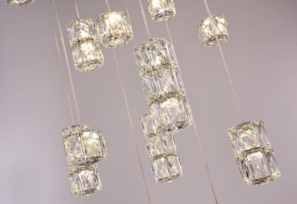 This exquisite LED lighting is in a chrome finish. The frame is made out of metal with crystal hanging pendants in clear color. The color temperature can be changed to 3000K, 4500K, and 6000K