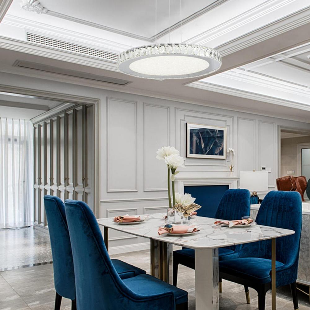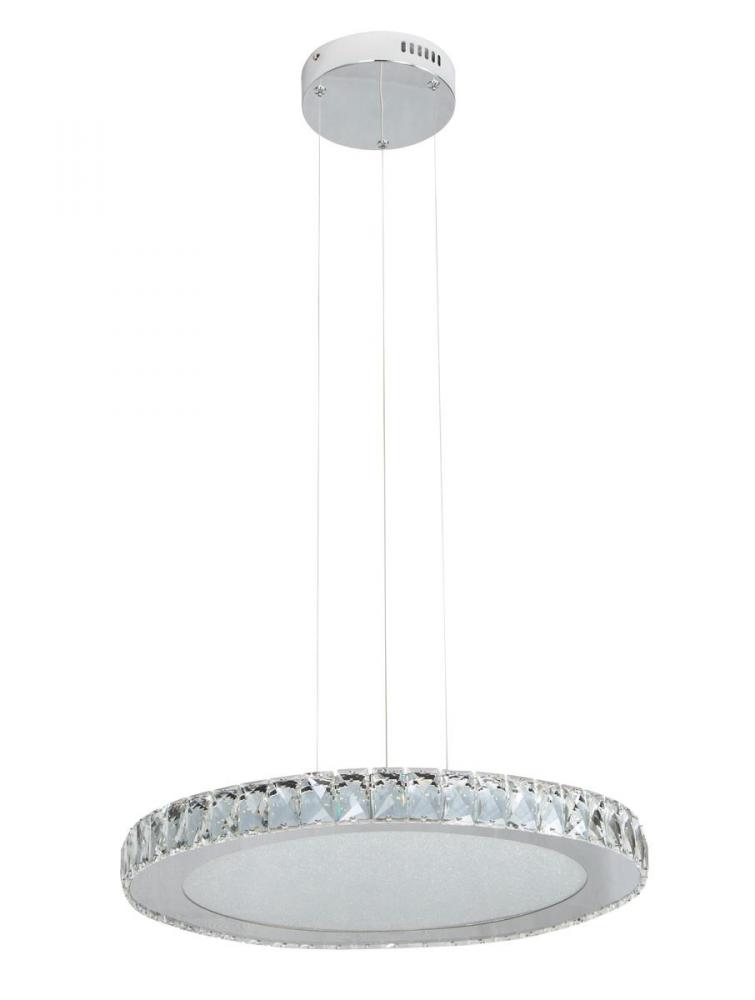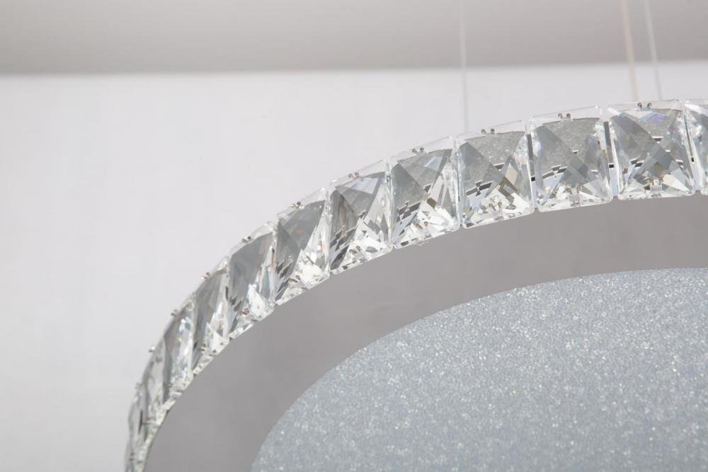 This exquisite LED lighting is in a chrome finish. The frame is made out of stainless steel, and the LED bulbs are integrated into the frame. It also comes with a beaded sand glass bottom cover.