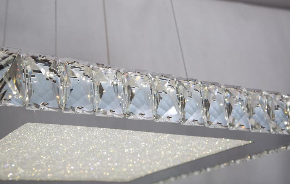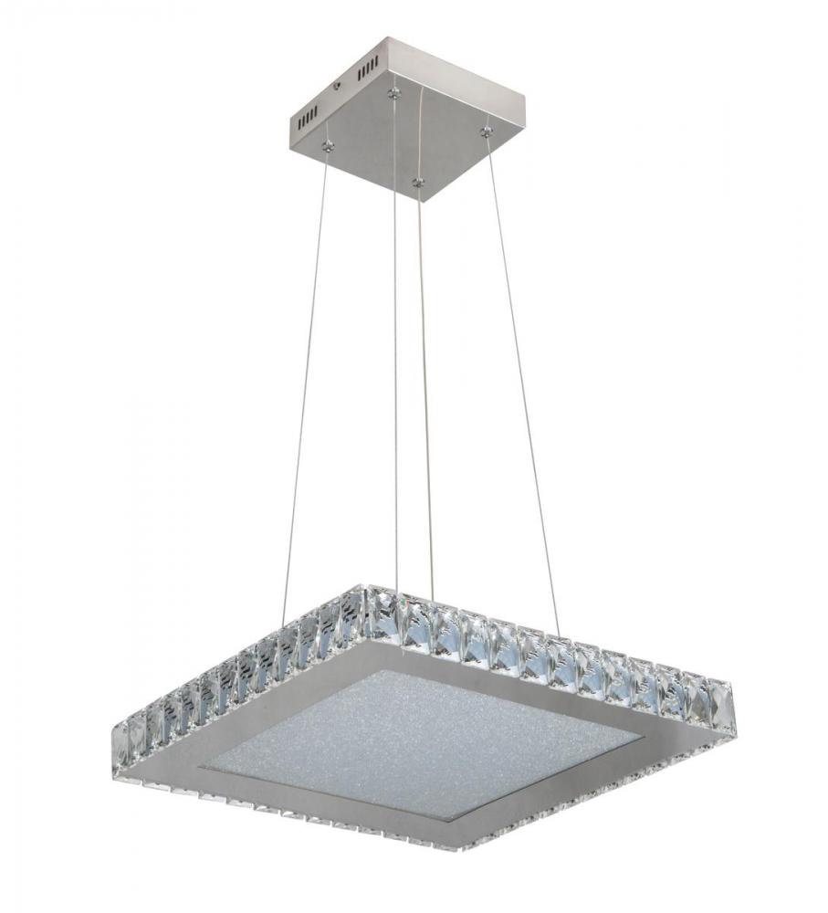 This exquisite LED lighting is in a chrome finish. The frame is made out of stainless steel, and the LED bulbs are integrated into the frame. It also comes with a beaded sand glass bottom cover.