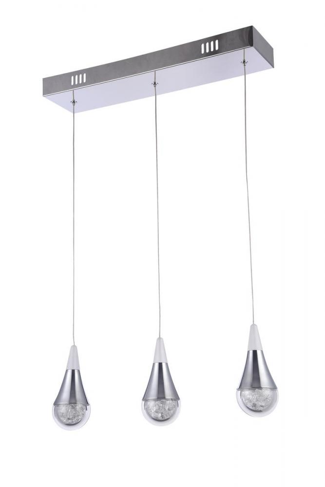 This exquisite LED lighting is in a chrome finish. The frame is made out of metal, and it comes with clear glass shades and clear crystal accents. The LED bulbs are integrated into the fixture. The cord links can be adjustable.