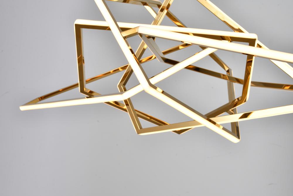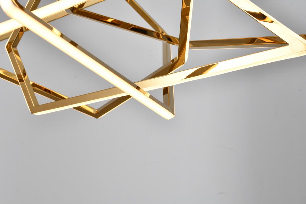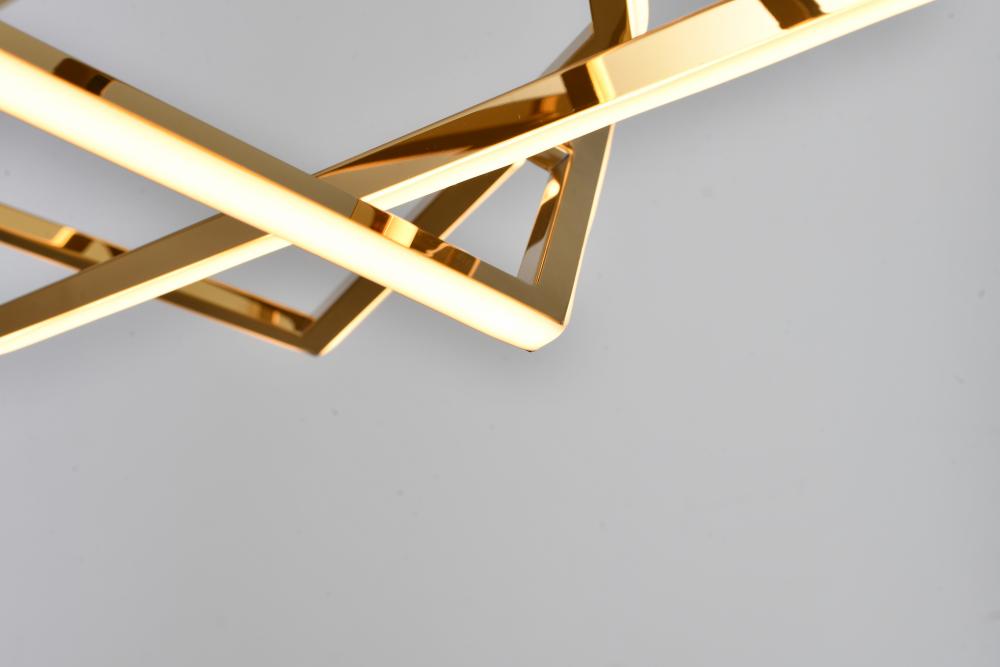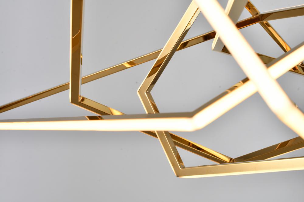 This chandelier is in a gold finish. It comes with a white acrylic diffusers. The cord length of 2.5 meters is provided and the cord length is adjustable.