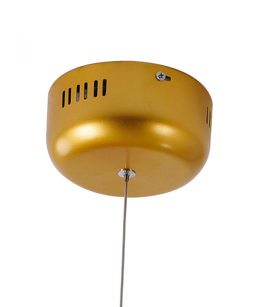 This exquisite LED chandelier is in a gold finish. The frame is made out metal, and it comes with frosted acrylic diffusers. The LED bulbs are integrated into the frame. The adjustable cord link makes this fixture suitable for most ceiling heights.