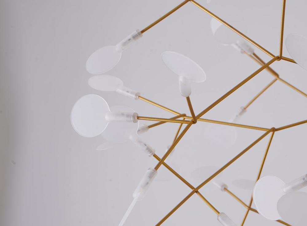 This exquisite LED chandelier has a gold metal frame