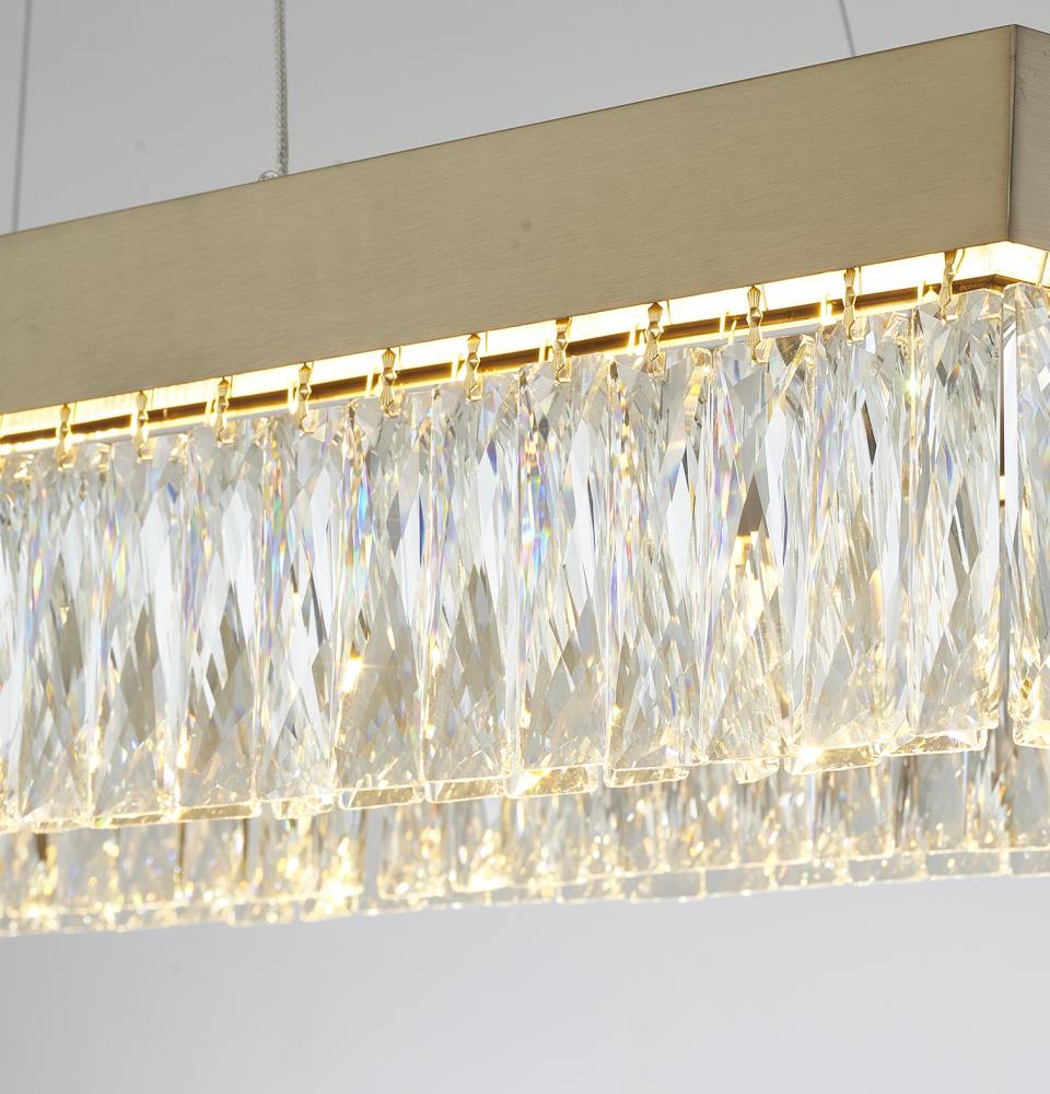 This chandelier is a gold hairline frame LED chandelier