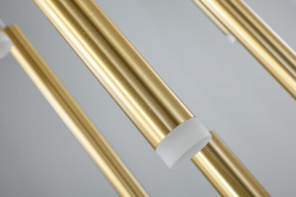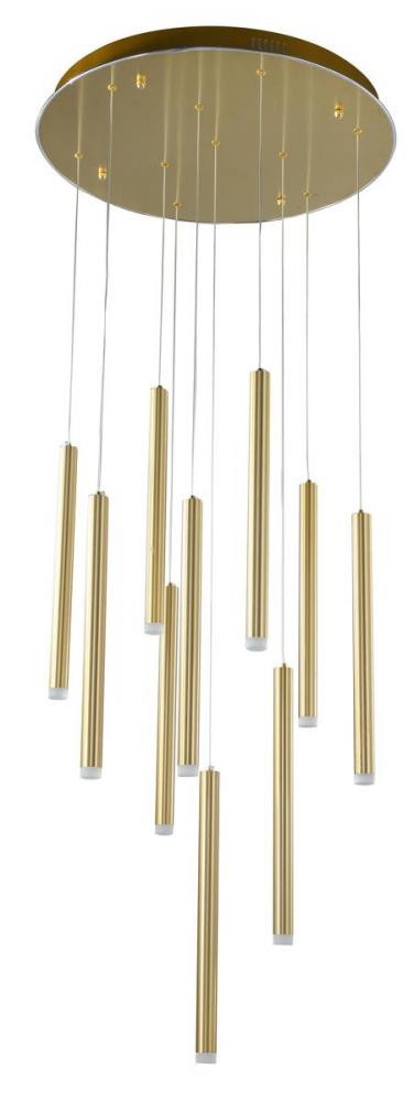 This exquisite LED lighting is in a gold finish. The frame is made out of aluminum with frosted acrylic diffusers, and LED bulbs are integrated into the hanging rods. You can create a timeless feel while using modern forms.