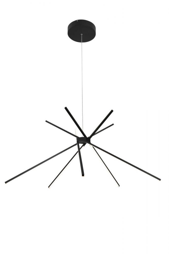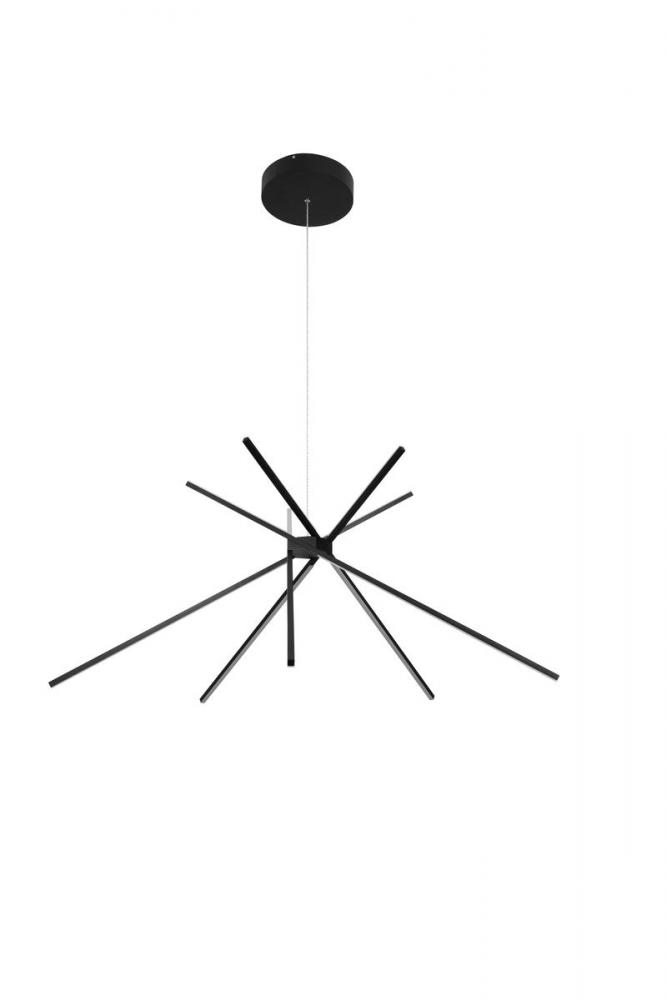 This exquisite LED lighting is in a matte black finish. The frame is made out of metal with frosted white diffusers in match stick shape. The color temperature can be changed to 3000K, 4500K, and 6000K by a remote controller