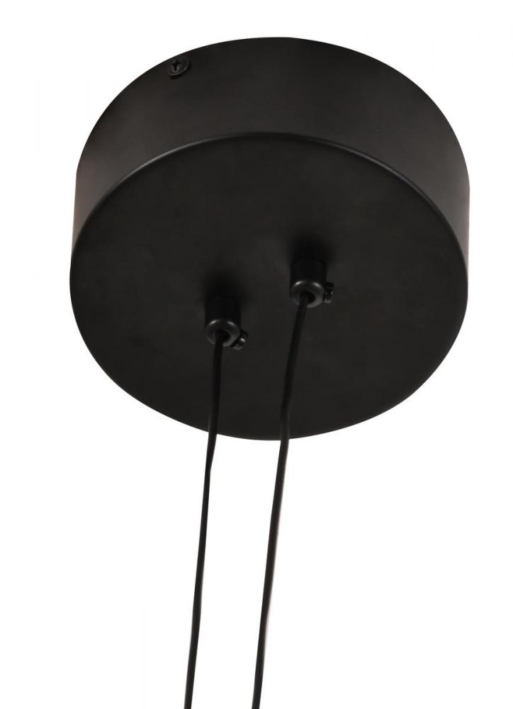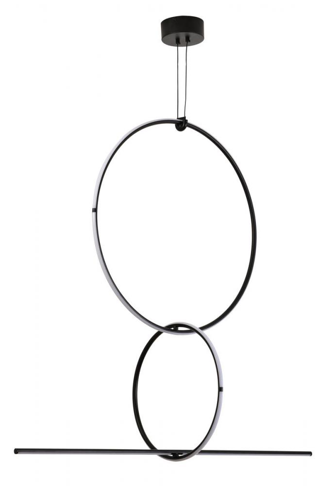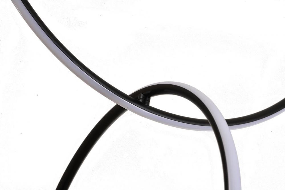 This unique LED chandelier is in a black finish. The frame is made out of metal, and the LED bulbs are integrated into the frame. It also comes with white acrylic diffusers.