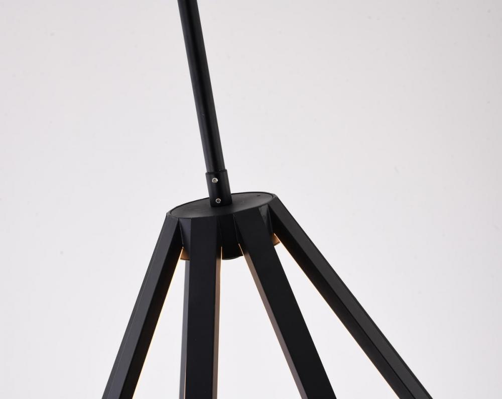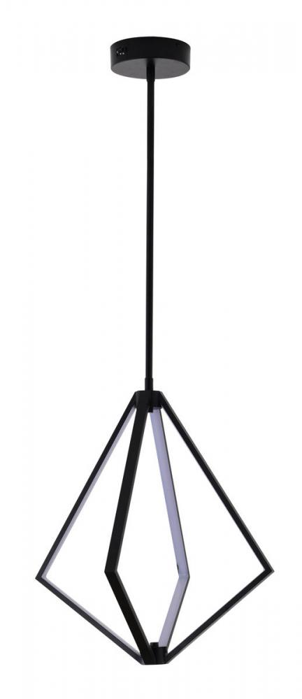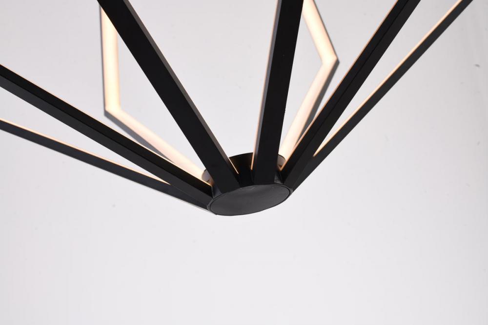 This special LED chandelier is in a black finish. The frame is made out of metal in a diamond shape with silicone diffusers. The LED bulbs are integrated into the frame. The adjustable rod link makes this fixture suitable for most ceiling heights.
