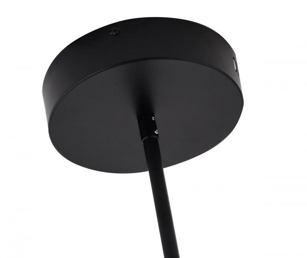 This Led chandelier has a black metal frame