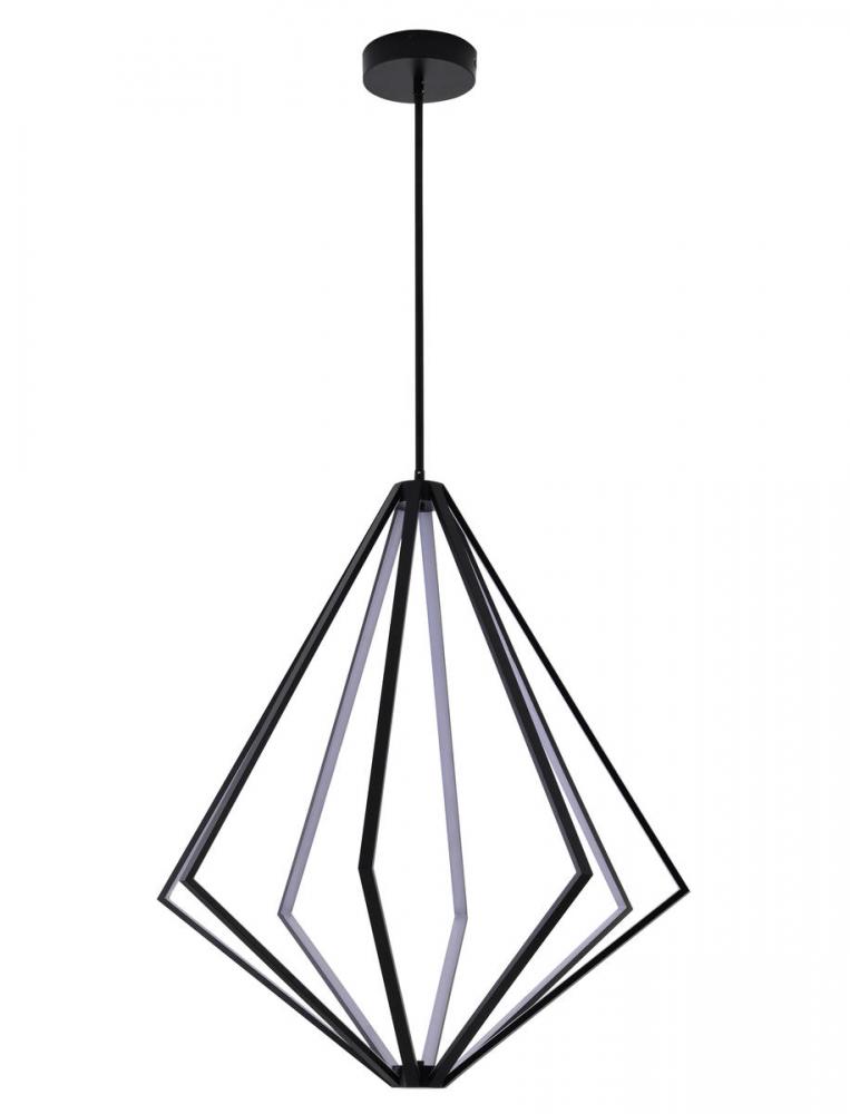 This special LED chandelier is in a black finish. The frame is made out of metal in a diamond shape with silicone diffusers. The LED bulbs are integrated into the frame. The adjustable rod link makes this fixture suitable for most ceiling heights.