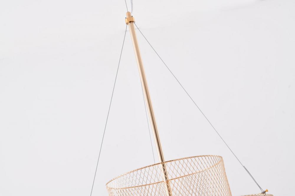 This exquisite LED chandelier is in a gold finish. The frame is made out of metal, and it comes with a three tier mesh. The LED bulb is integrated into the frame. The adjustable cord link makes this fixture suitable for most ceiling heights