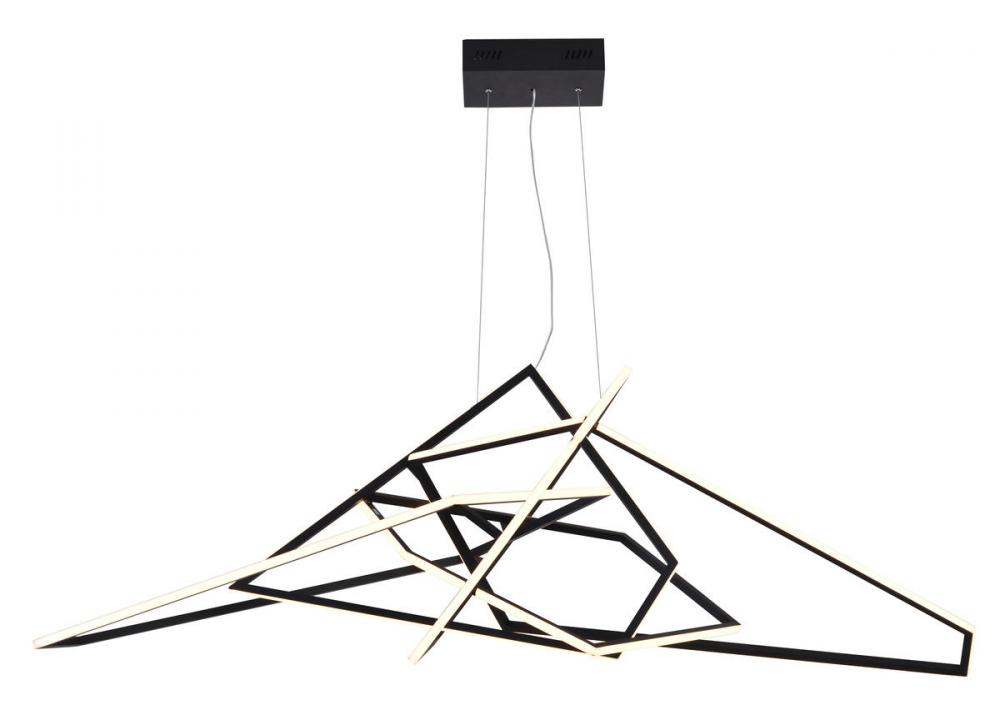 This dimmable LED chandelier has a black stainless steel frame