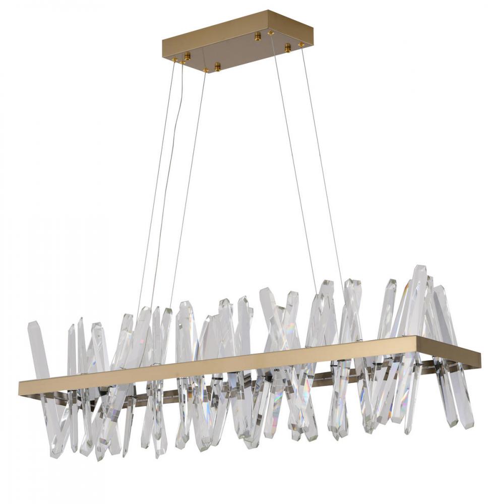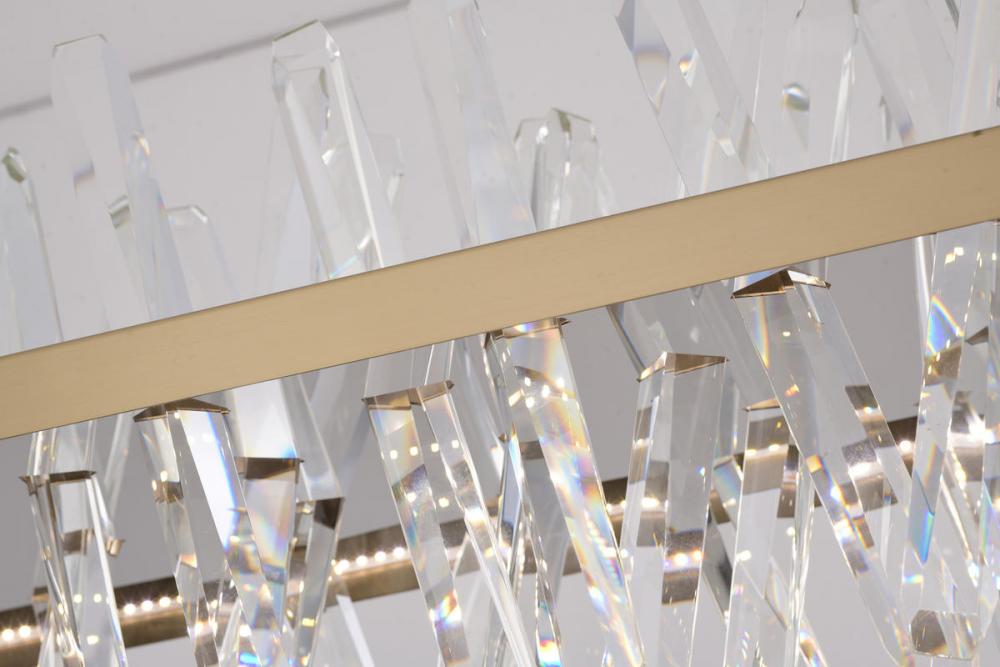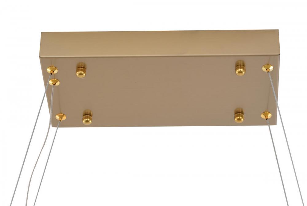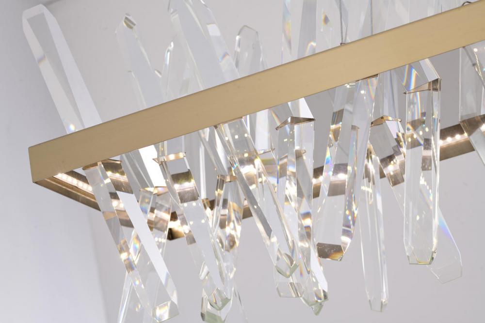 This LED chandelier has a gold stainless steel frame