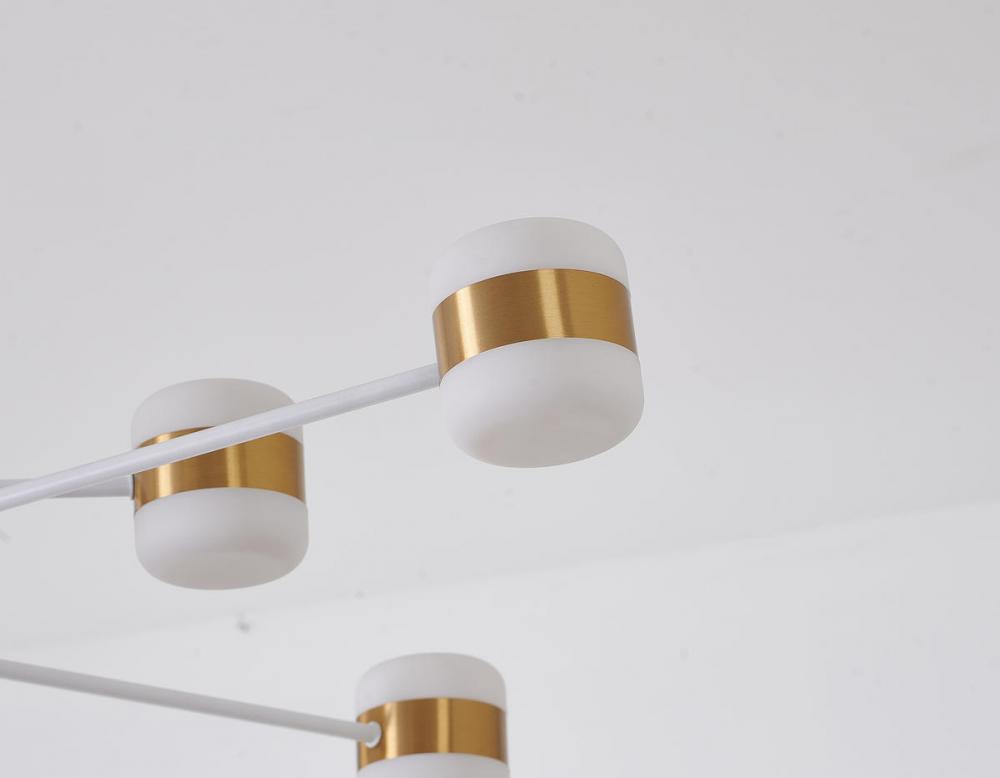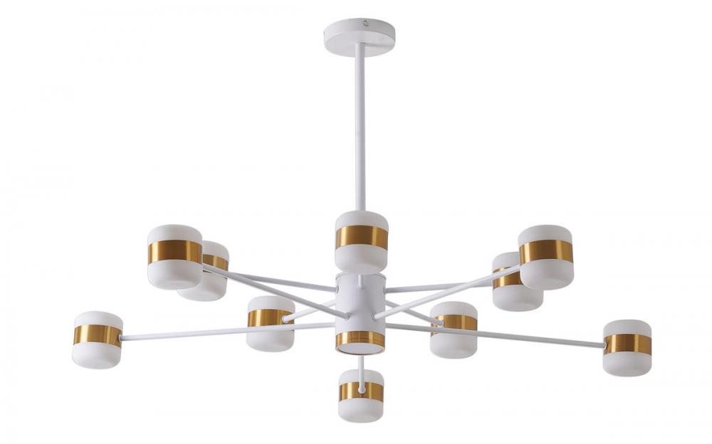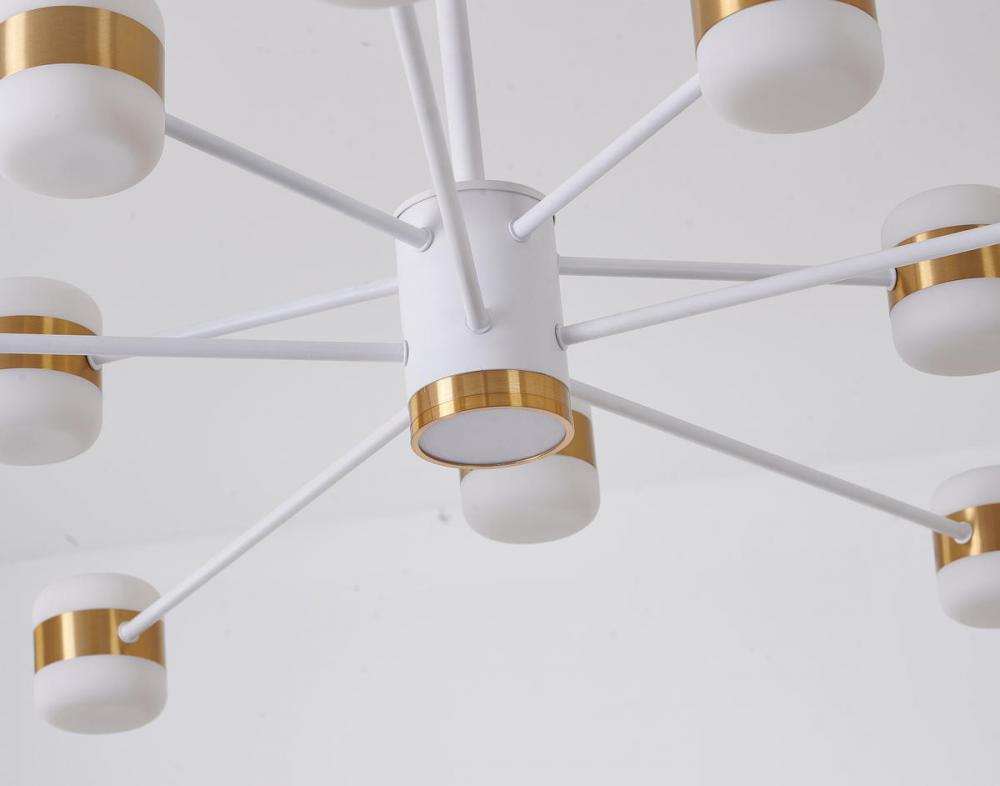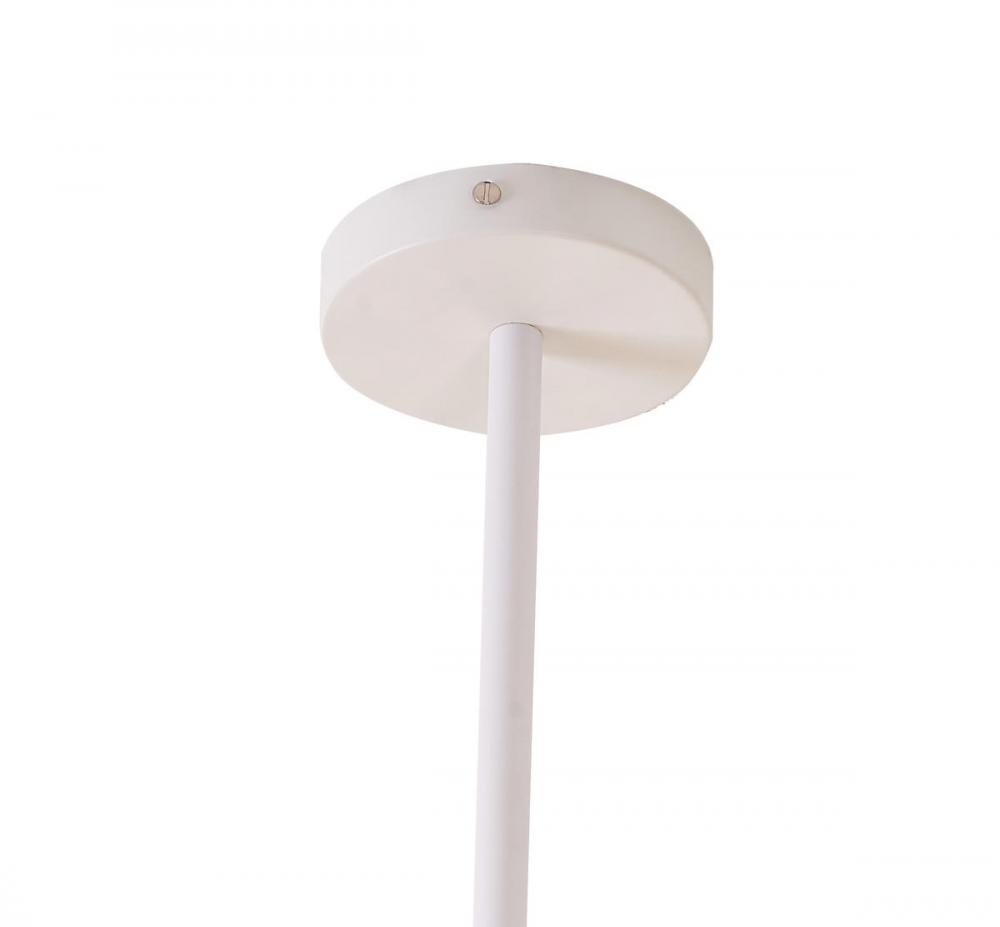 This exquisite LED chandelier is in a white finish. The frame is made out of metal, and the LED bulbs are integrated into the frame. The adjustable rod link makes this fixture suitable for most ceiling heights.