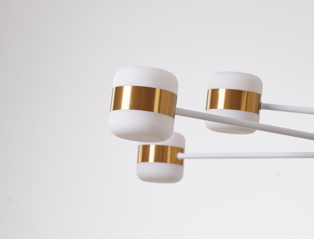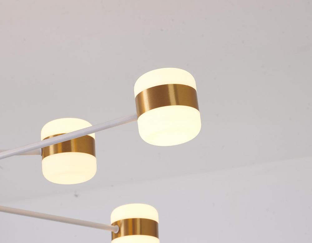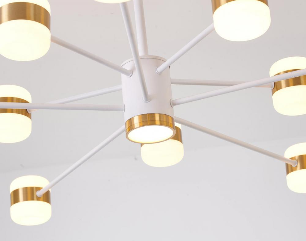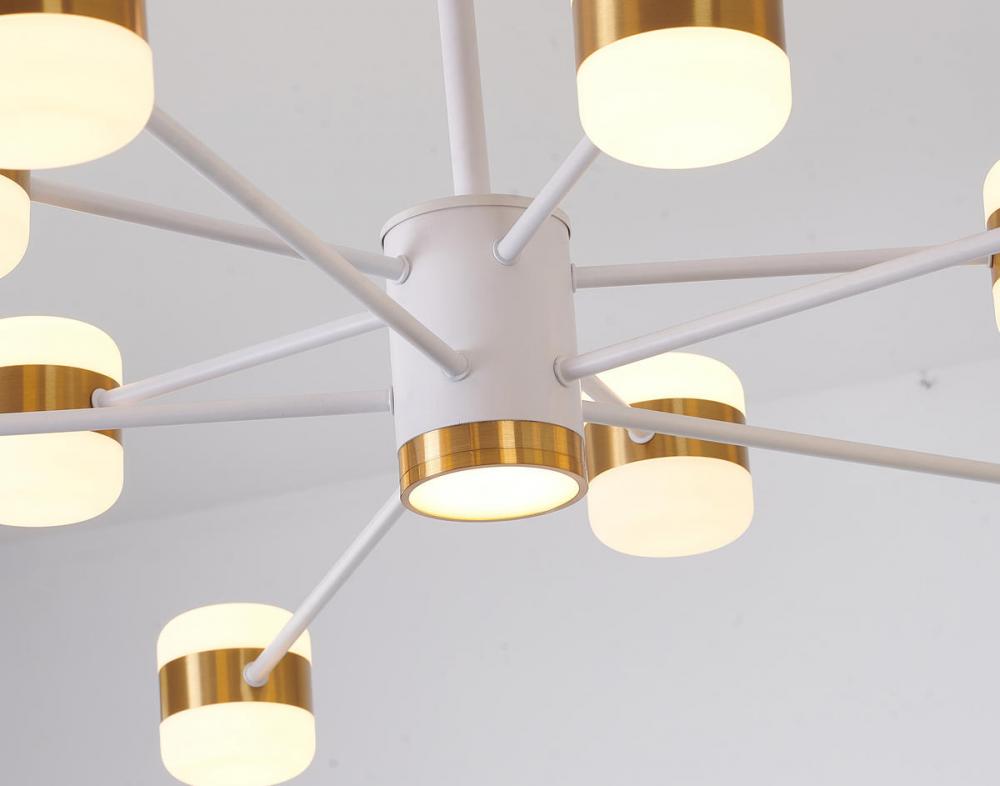 This exquisite LED chandelier is in a white finish. The frame is made out of metal, and the LED bulbs are integrated into the frame. The adjustable rod link makes this fixture suitable for most ceiling heights.