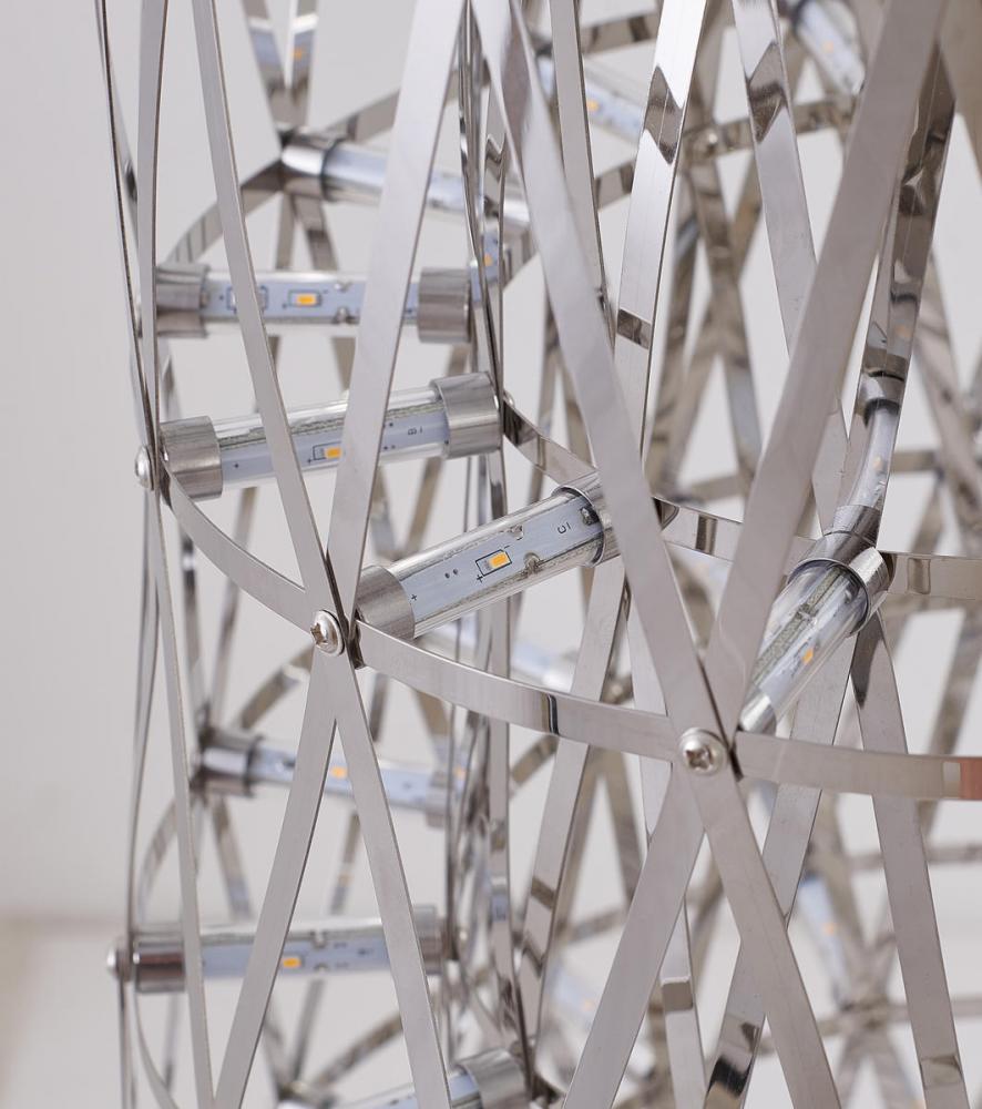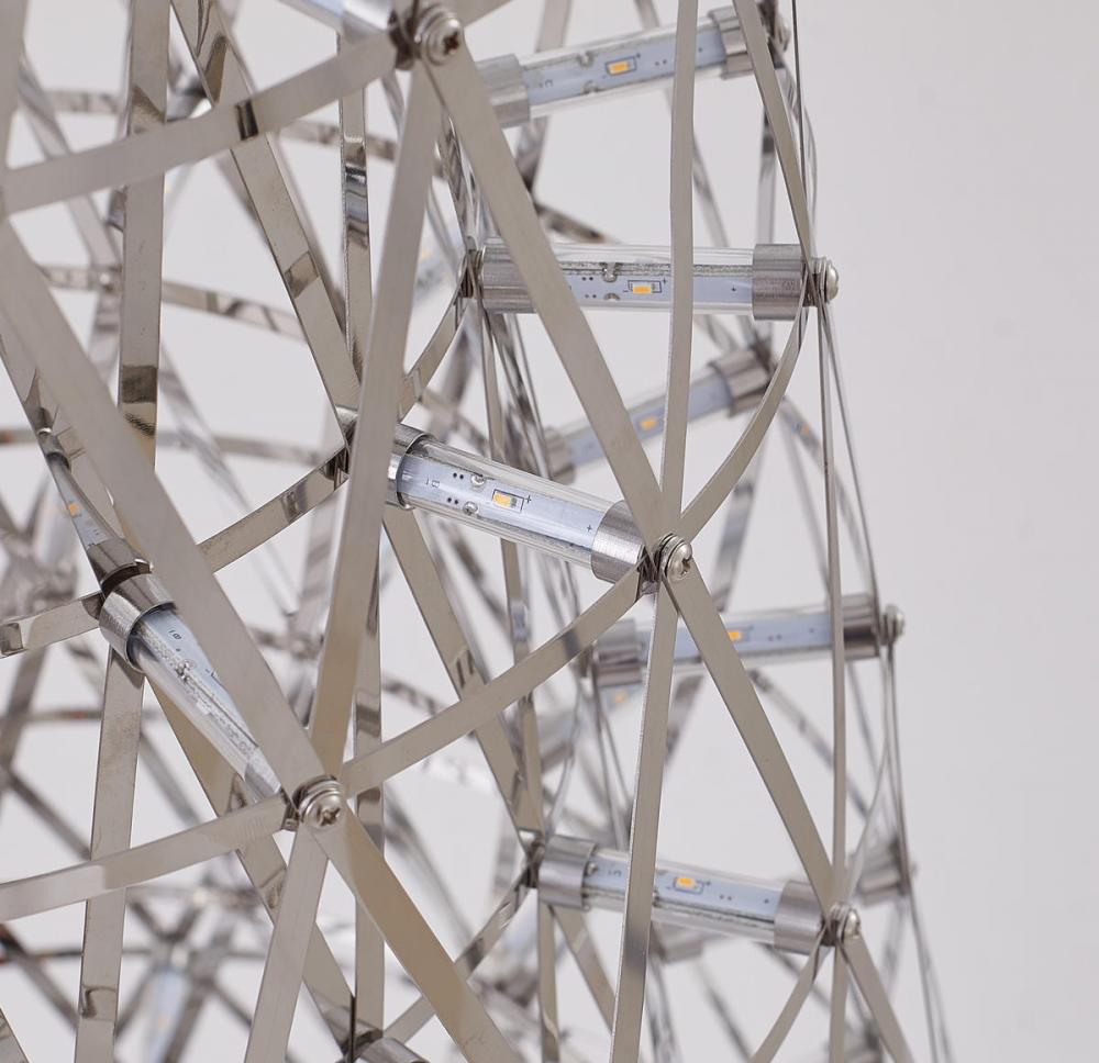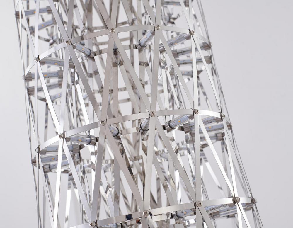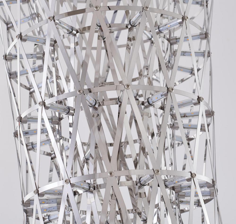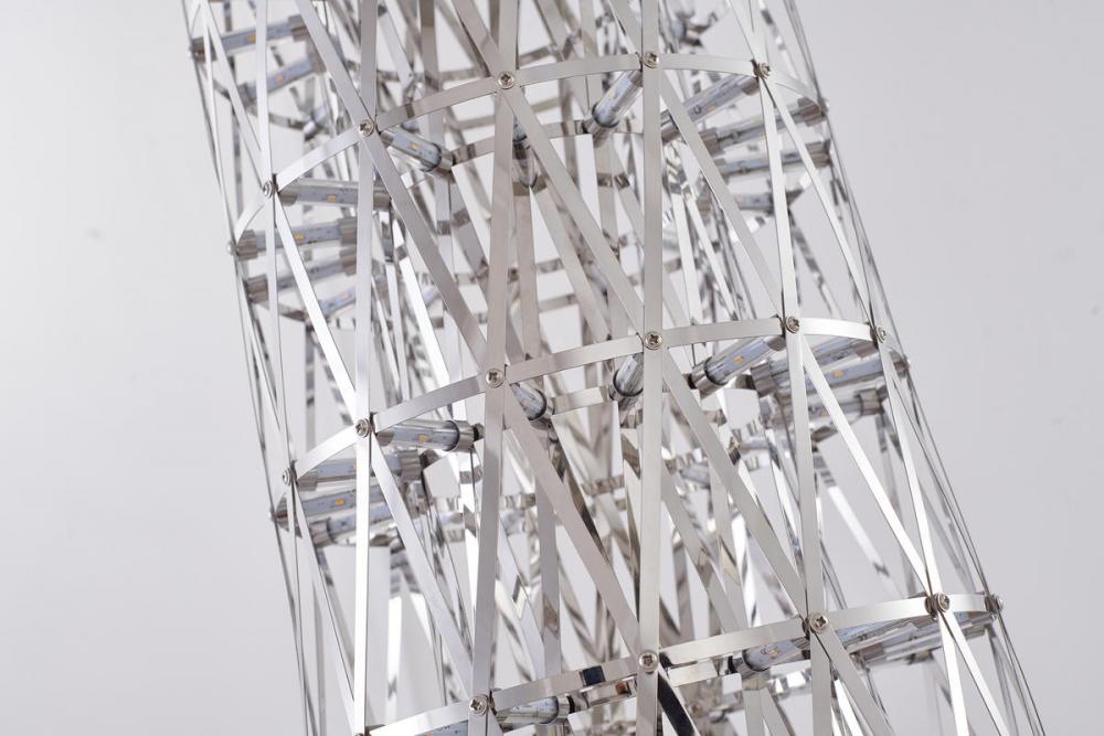 This unique LED floor lamp is in a chrome finish. The frame is made out of stainless steel, and LED bulbs are integrated into the frame. It comes with a plug in ON/OFF switch. It great for chair side reading or general room illumination