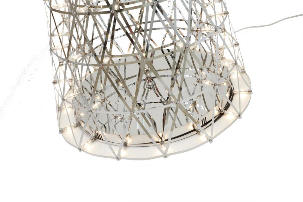 This exquisite LED floor lamp is in a chrome finish. The frame is made out of stainless steel, and the LED bulbs are integrated into frame. It also has a plug in switch with an ON/OFF button. It is great for chair side reading or general illumination.