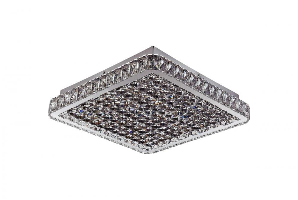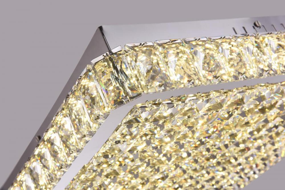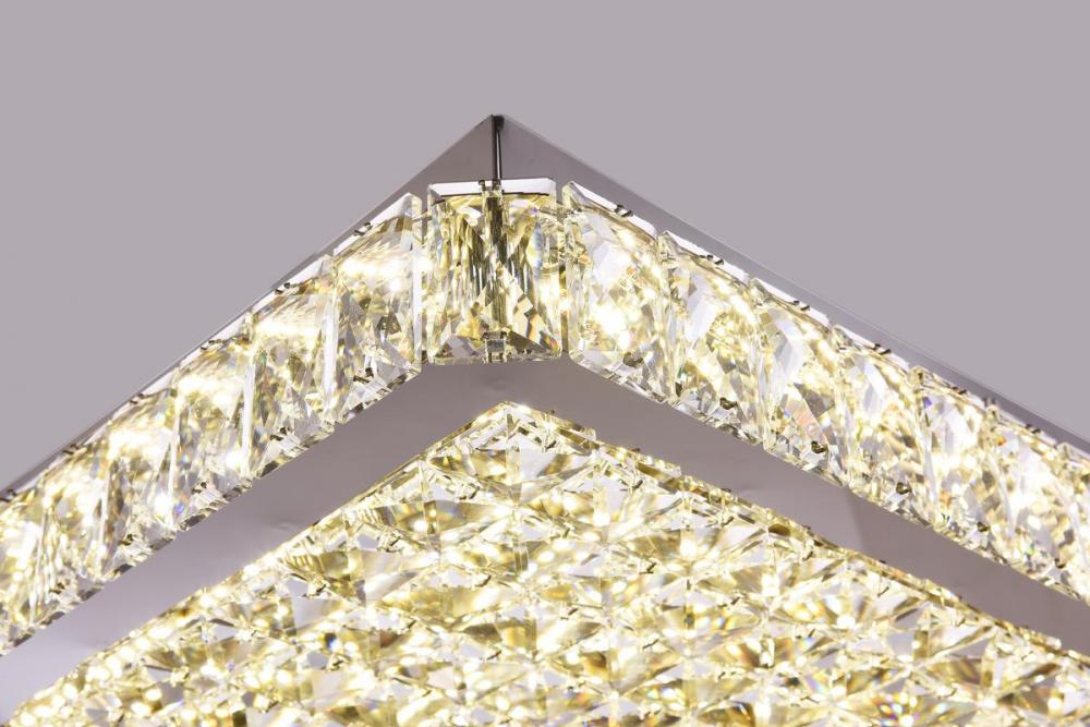 This dimmable LED flush mounts is in a chrome finish. The frame is made out of stainless steel with clear crystal accent.