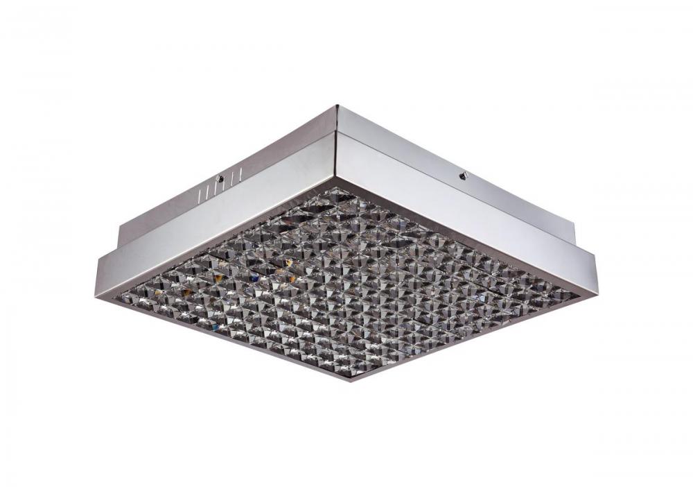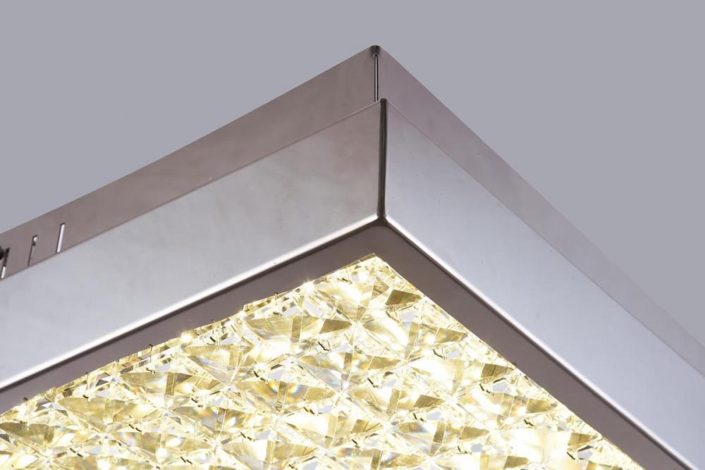 This dimmable LED flush mounts is in a chrome finish. The frame is made out of stainless steel with clear crystal accent.