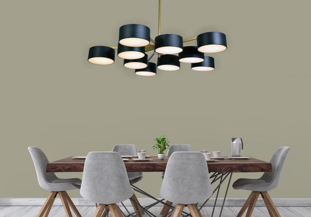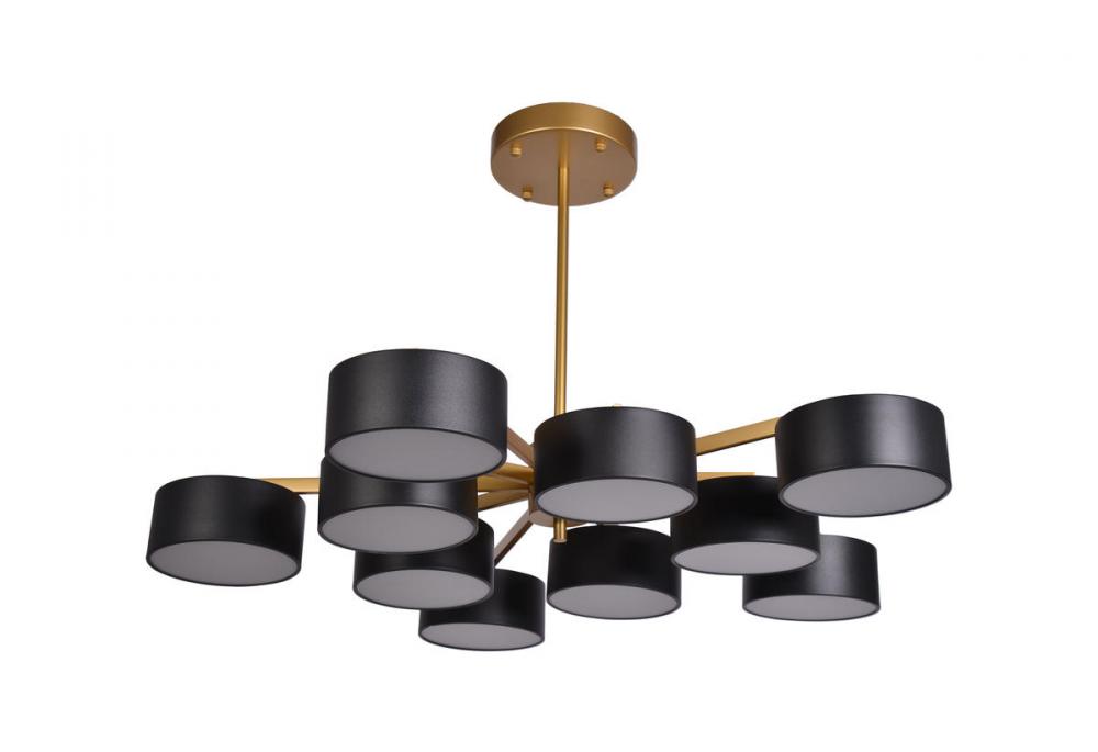 This exquisite LED lighting is in a gold finish. The frame is made out of metal with black shades, and LED bulbs are integrated into the fixture. The adjustable rod link makes this fixture suitable for most ceiling heights.
