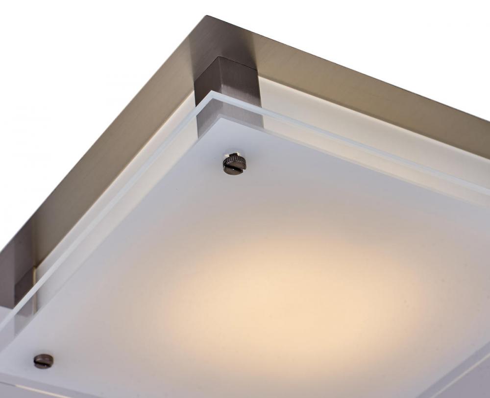 This exquisite LED flush mount is in a brushed nickel finish. The frame is made out of metal, and it comes with a frosted glass cover on the bottom of the fixture. This fixture can be used in any room, entryways, and more.
