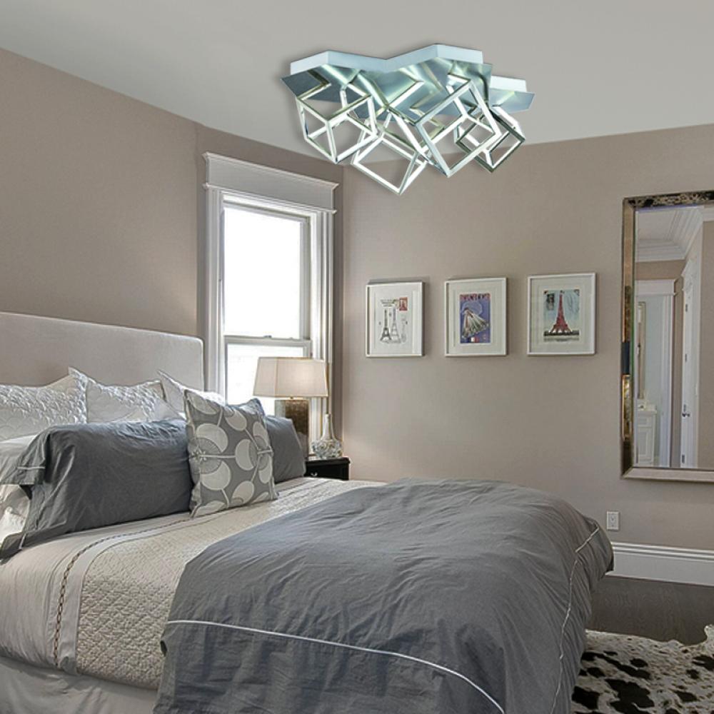 This modern LED flush mount has a nickel aluminum box frame