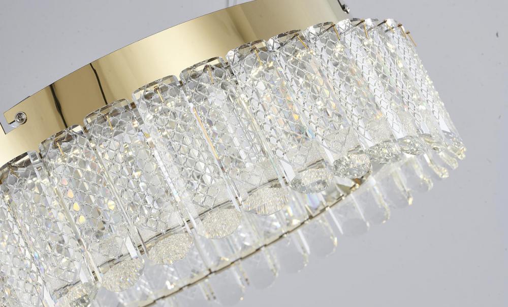 This exquisite LED flush mount is in a gold finish. The frame is made out of stainless steel in a round shape, and it comes with clear crystal accents. The LED bulb is integrated into the frame. You can create a timeless feel while using modern forms