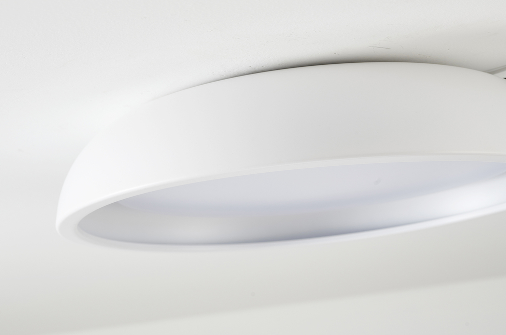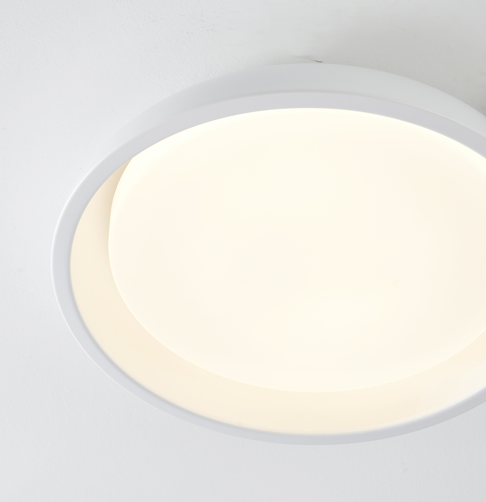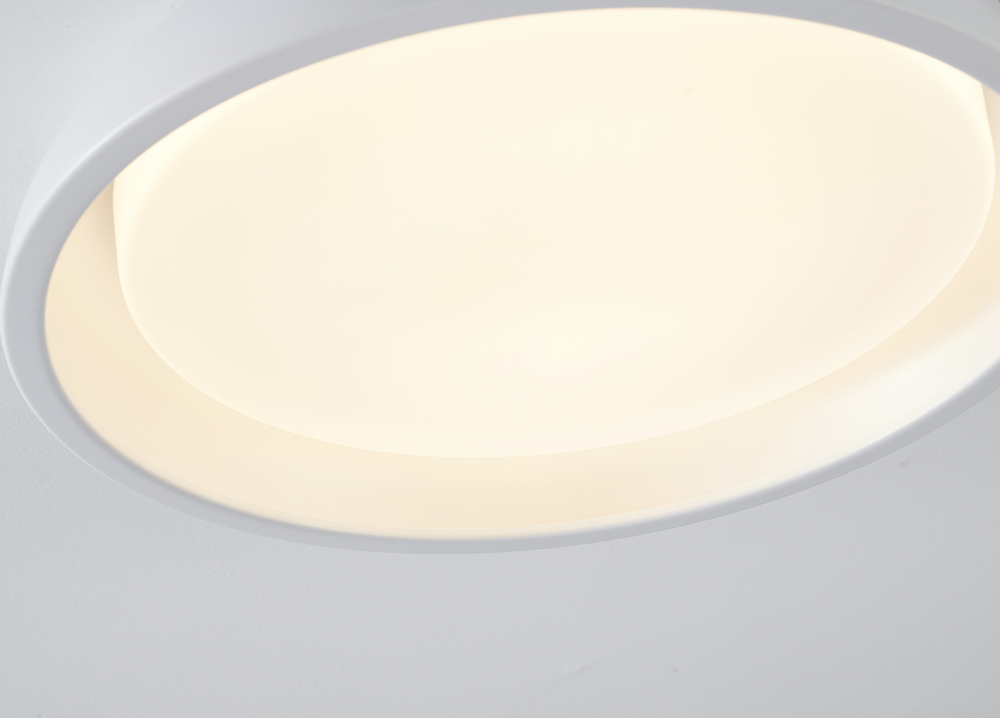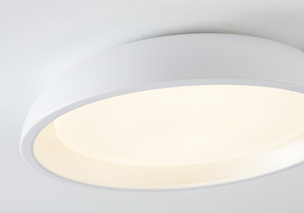 This LED flush mount is a matte white flush mount. It comes with an acrylic diffuser. The materials for this flush mount consists of metal and acrylic.