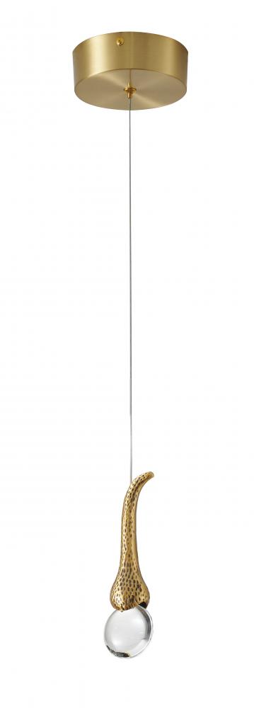 This LED pendant is an antique gold frame pendant light. It comes with a clear crystal accent. The cord length of 78.7 inches is provided and the cord length is adjustable.