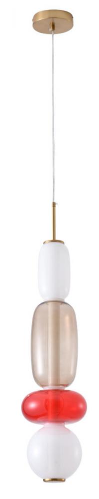 This exquisite LED pendant is in white, grey, and red finish. The frame is made out of metal in gold color, and the LED bulb is integrated into the frame. It also comes with a multi-color glass shade.