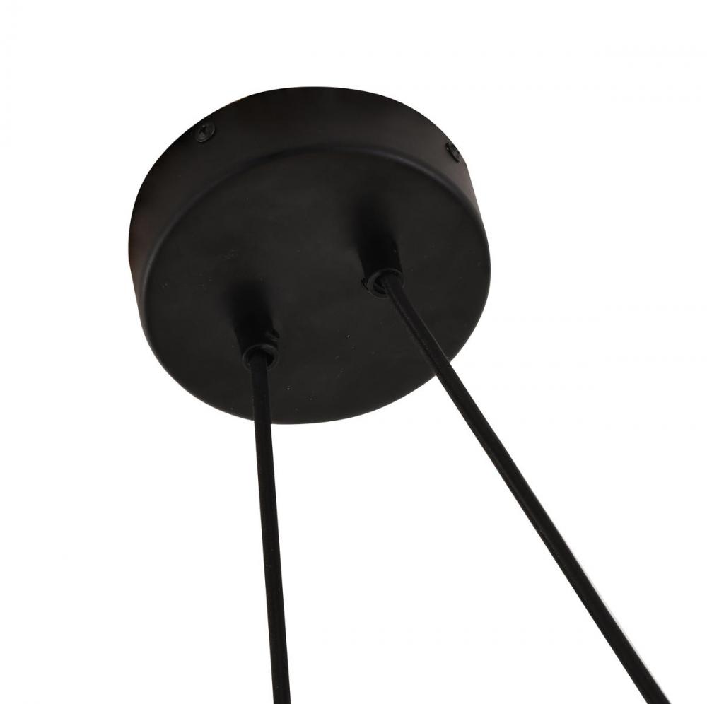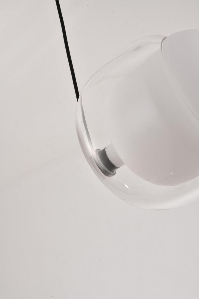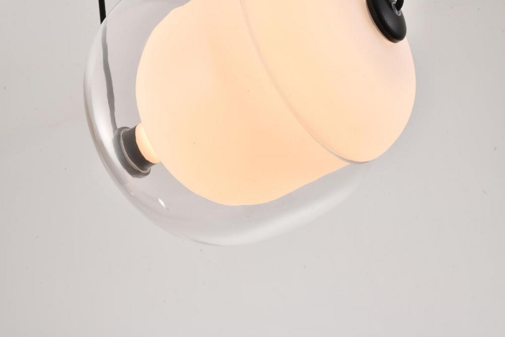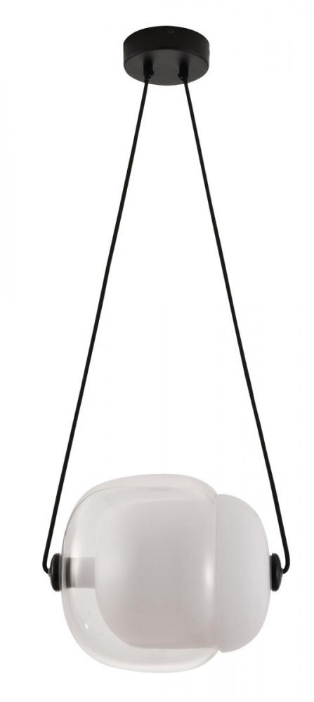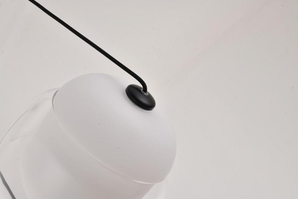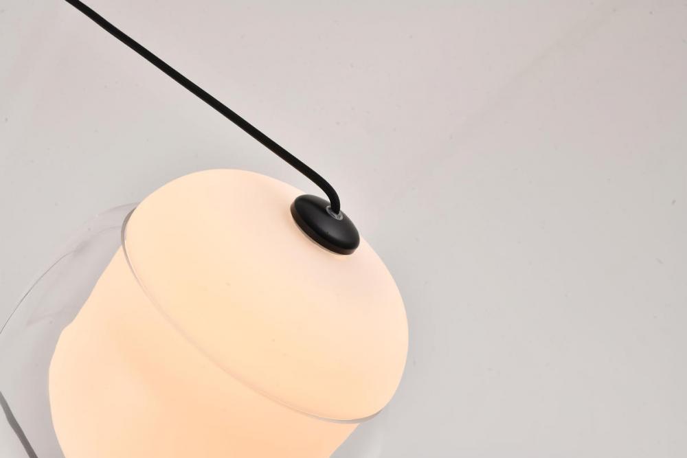 This exquisite LED pendant is in a black finish. The frame is made out of metal, and the LED bulb is integrated into the frame. It also comes with a white and clear glass shade. The adjustable cord links make this fixture suitable for most ceiling heights.