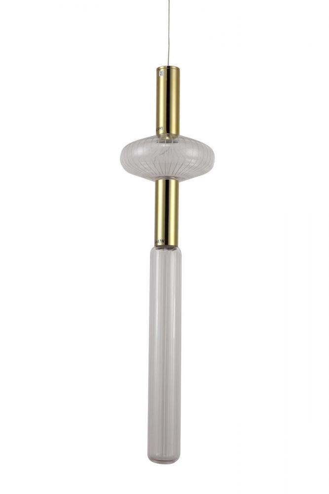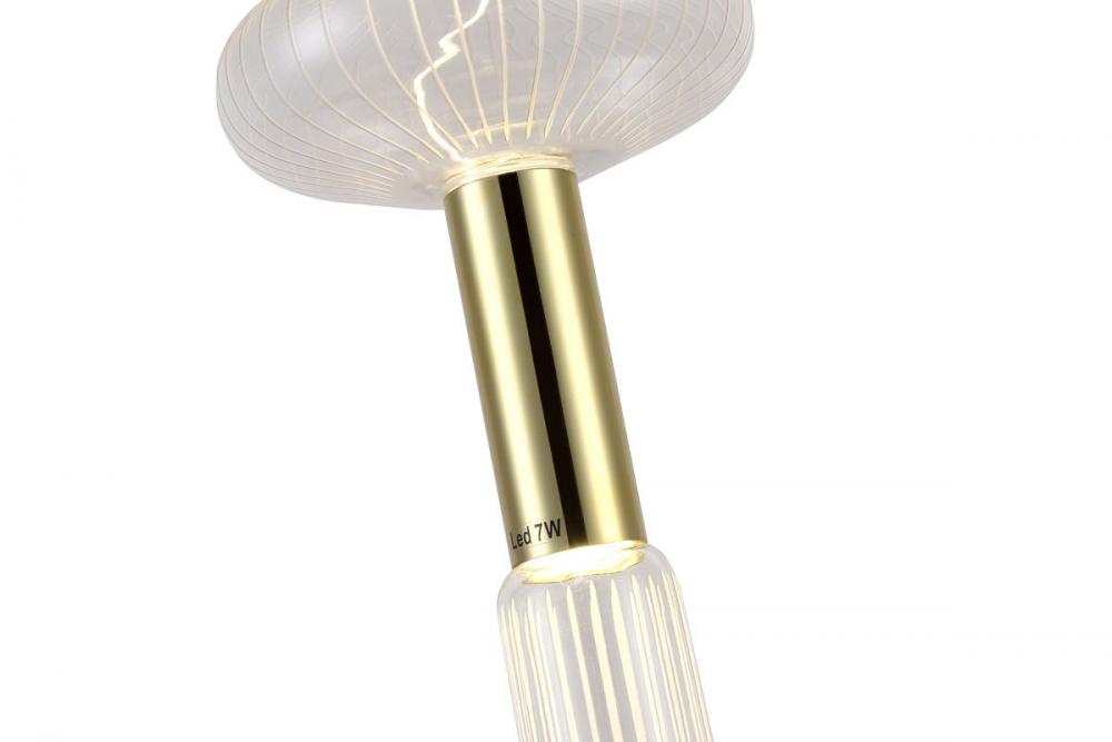 This exquisite LED pendant is in a gold finish. The frame is made out of metal, and it comes with clear glass shades. The LED bulbs are integrated into the frame. The adjustable cord link makes this fixture suitable for most ceiling heights.