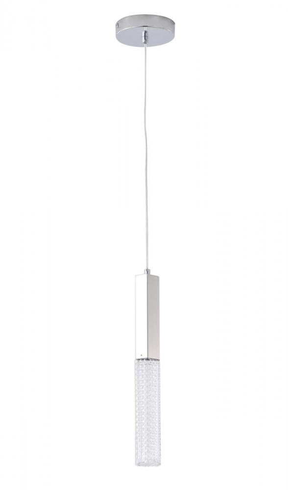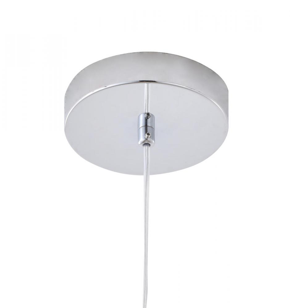 This exquisite LED pendant is in a chrome finish. The frame is made out of stainless steel, and it comes with a clear glass shade. The LED bulb is integrated into the frame. The adjustable cord link makes this fixture suitable for most ceiling heights.