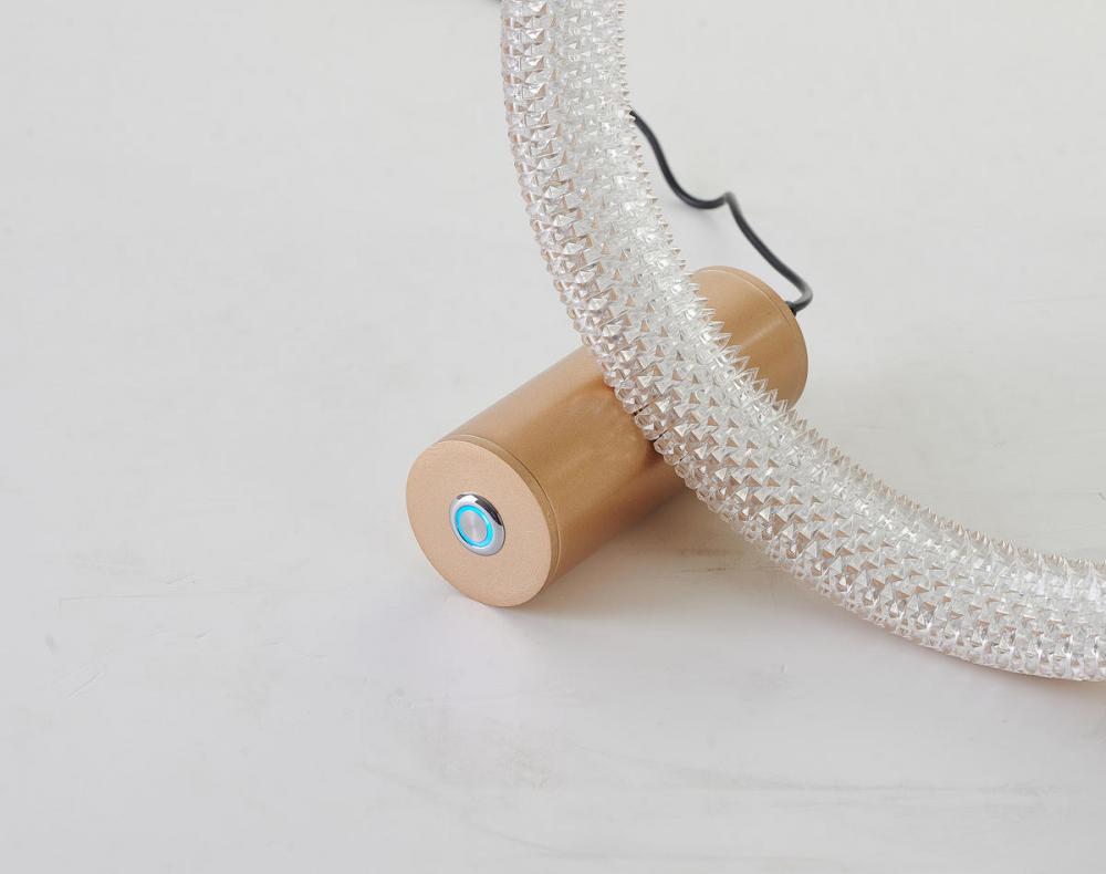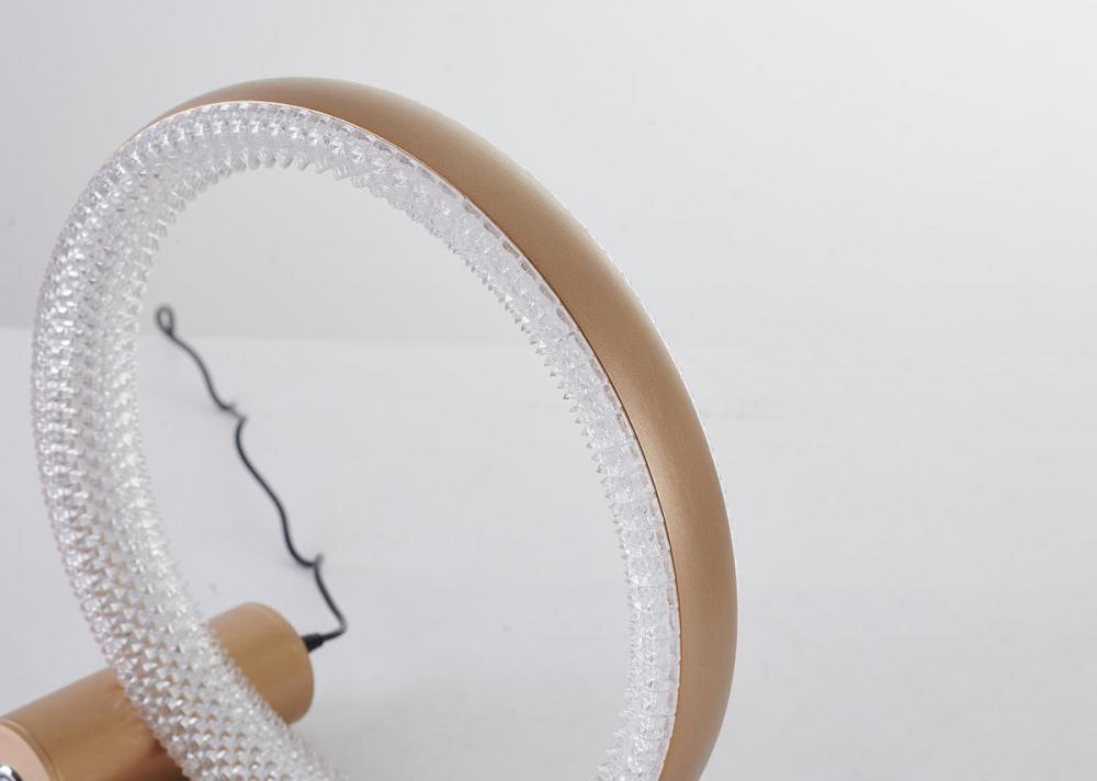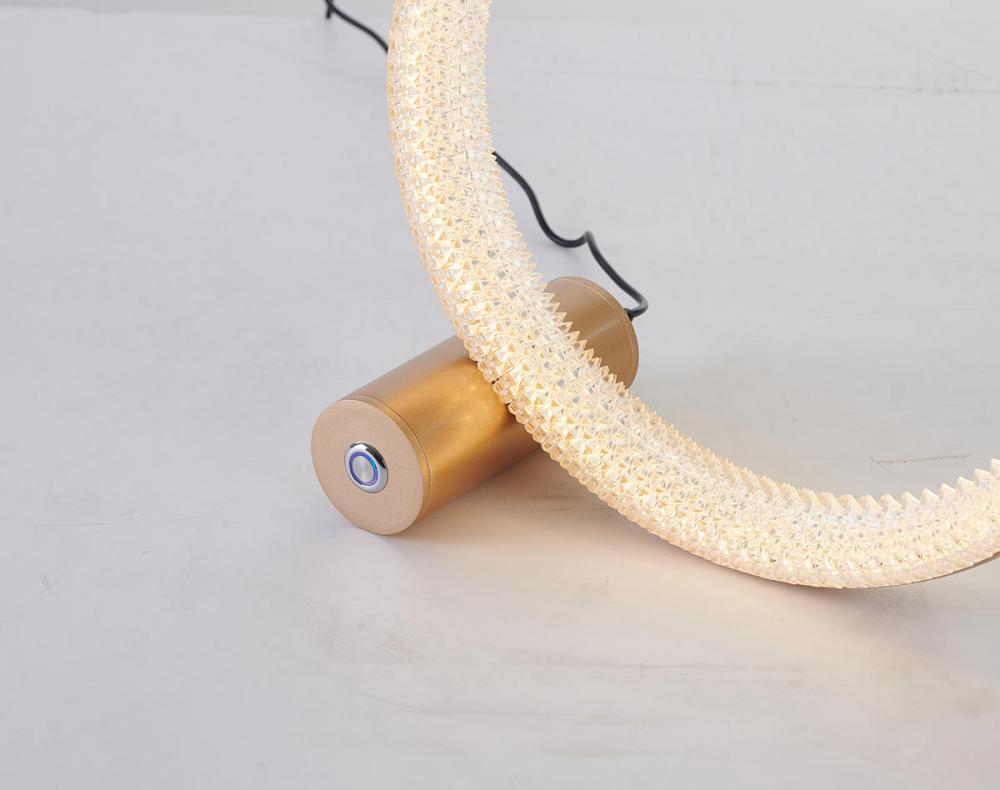 This exquisite LED table lamp is in a gold finish. The frame is made out of iron, and it comes with clear acrylic diffusers. The LED bulb is integrated into the frame. It is great for chair side reading or general room illumination