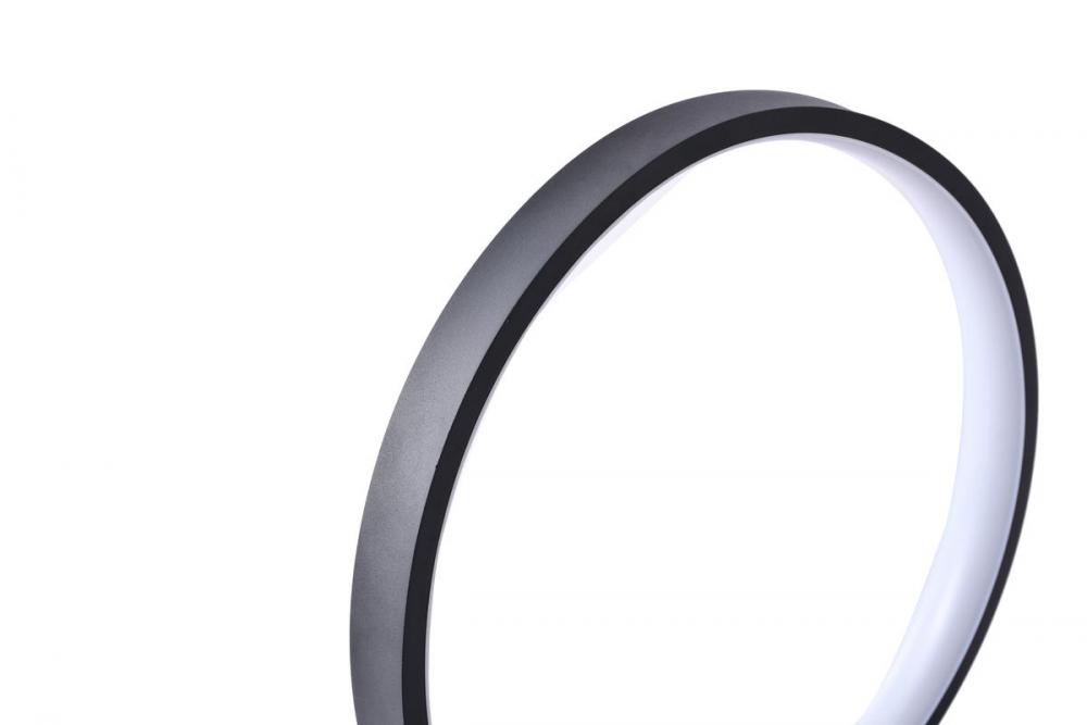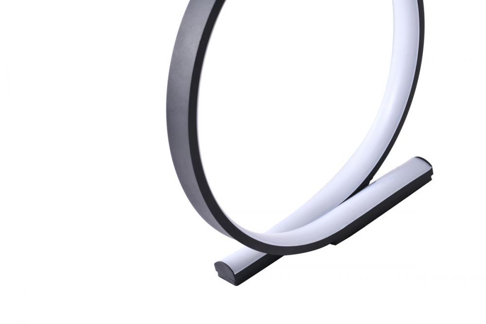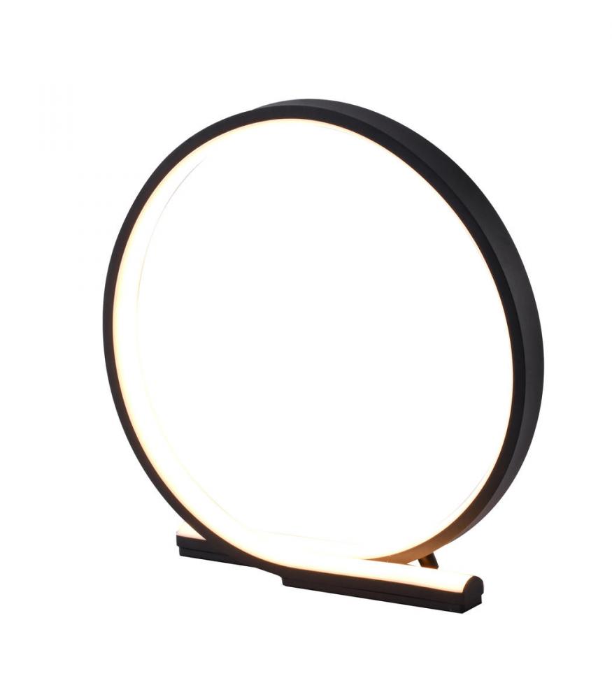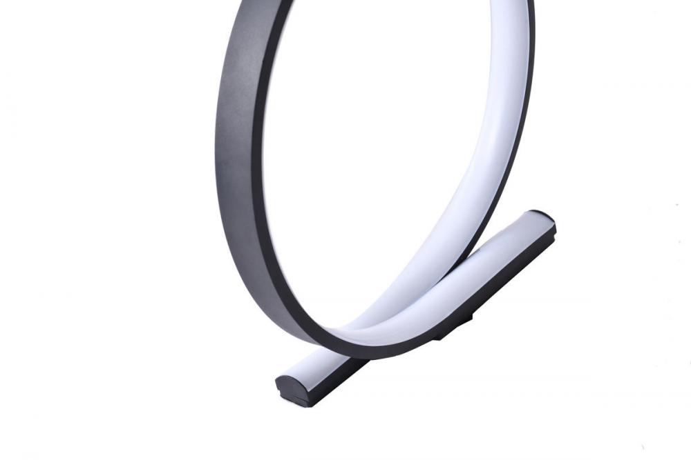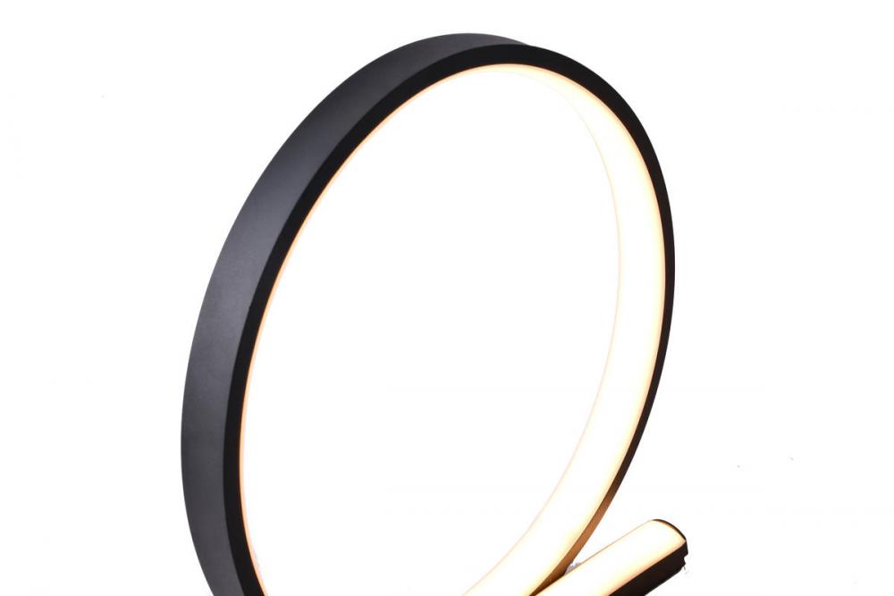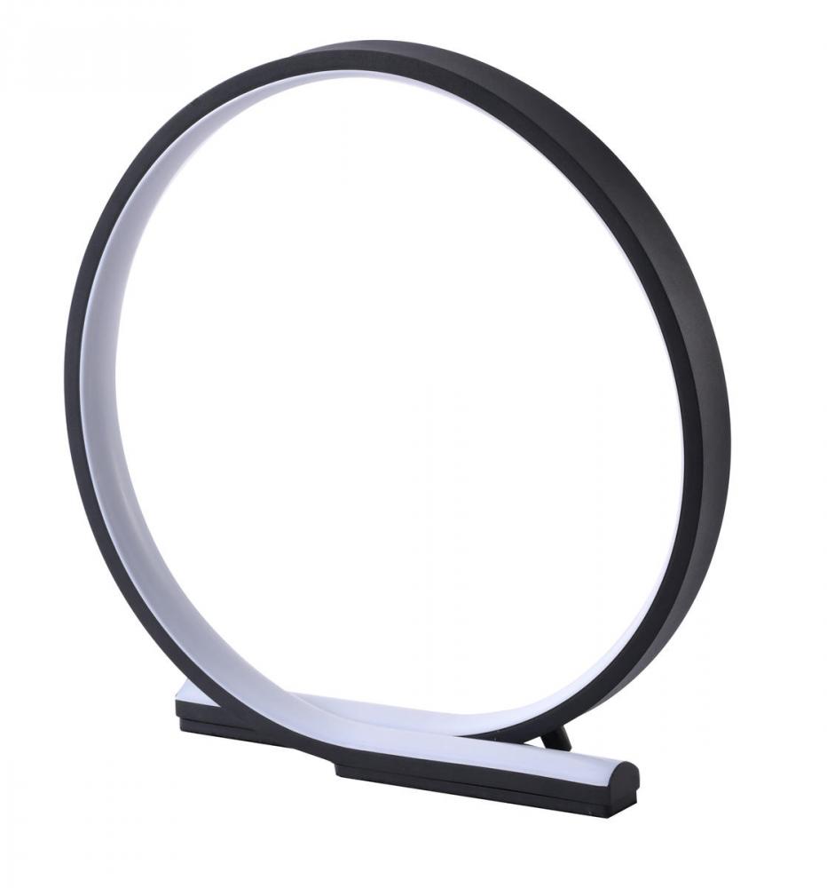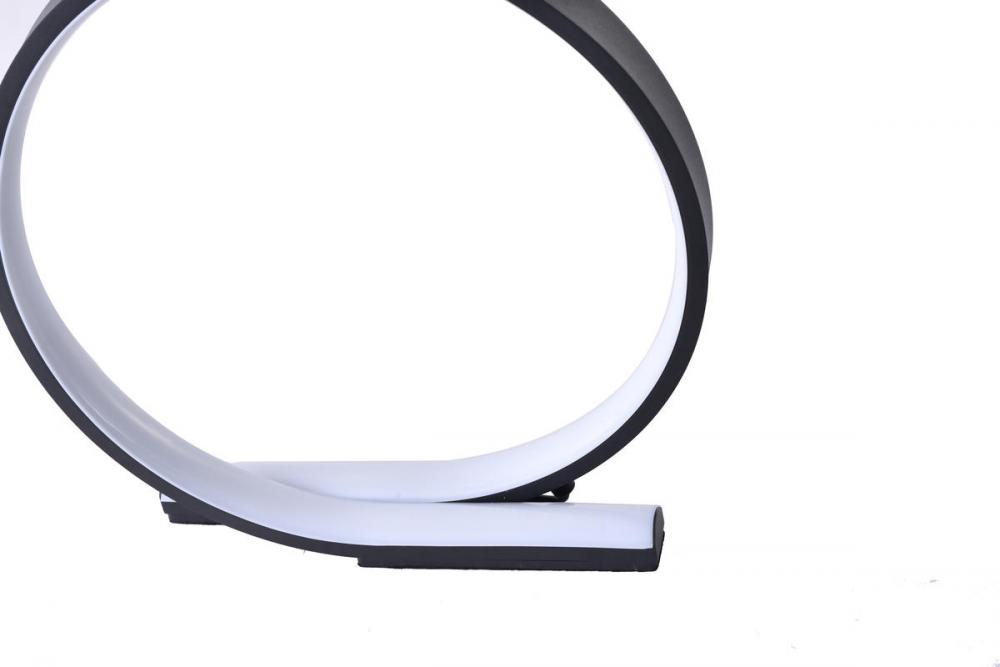 This LED table lamp is in a matte black finish. The frame is made out of metal, and it comes with a white acrylic diffuser. The LED bulb is integrated into frame. It is great for chair side reading and general illumination.