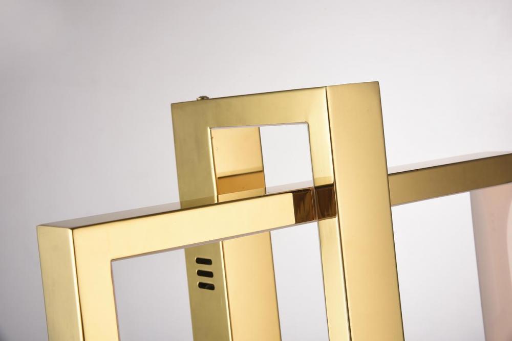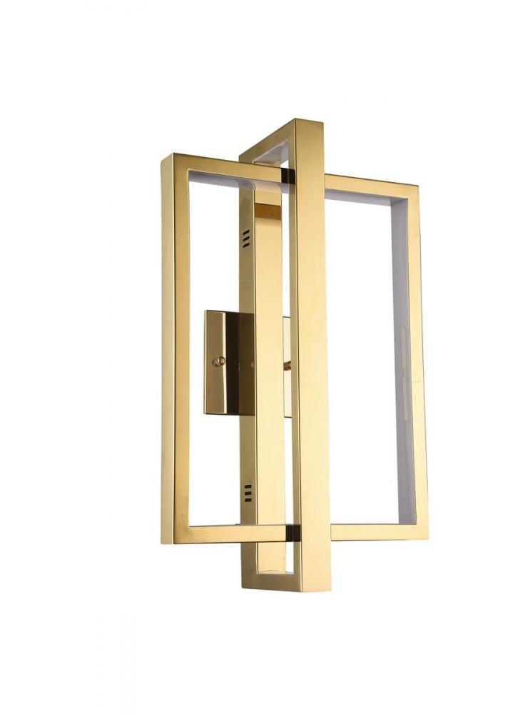 This modern LED wall sconce is in a gold finish. The frame is made out of stainless steel. It can be mounted horizontally or vertically.