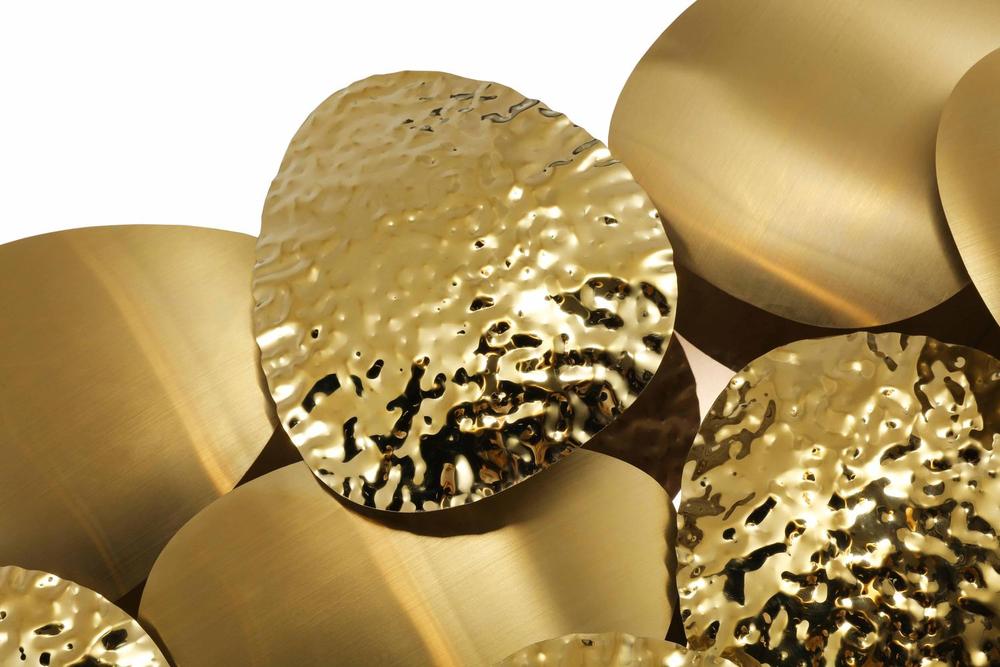 This exquisite LED wall sconce is in a gold finish. The frame is made out of stainless steel, and the LED bulbs are integrated into the frame. This LED wall sconce is dimmable, and you can create a timeless feel while using modern forms.