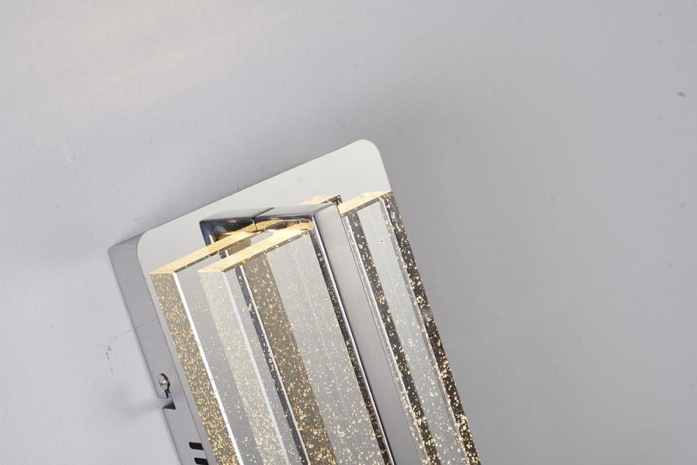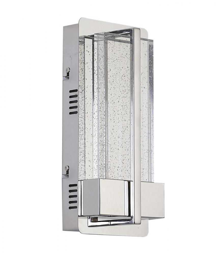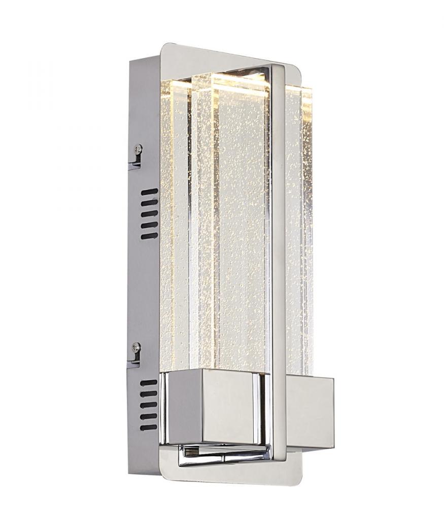 This exquisite LED wall sconce is in a chrome finish. The frame is made out of metal, and it comes with a clear bubble glass shade. The LED bulb is integrated into the frame. It can be used in any rooms, entryways, and more.
