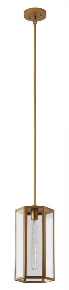 This exquisite outdoor pendant is in a brass finish. The frame is made out of iron, and it comes with a clear glass shade. The adjustable rod link makes this fixture suitable for most ceiling heights.