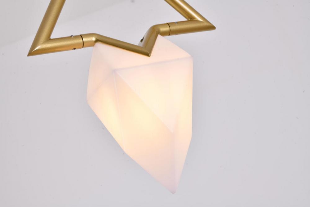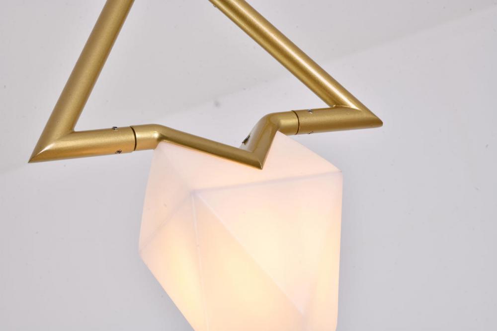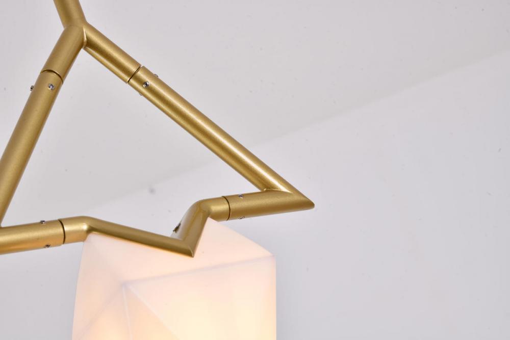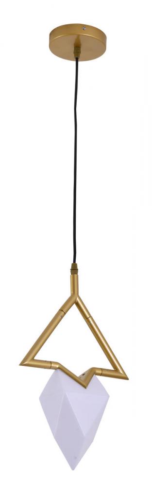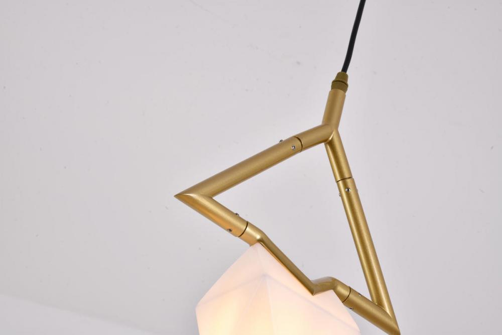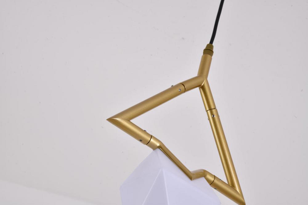 This exquisite pendant is in a gold finish. The frame is made out of metal, and it comes with a white acrylic shade. The adjustable cord link makes this fixture suitable for most ceiling heights.