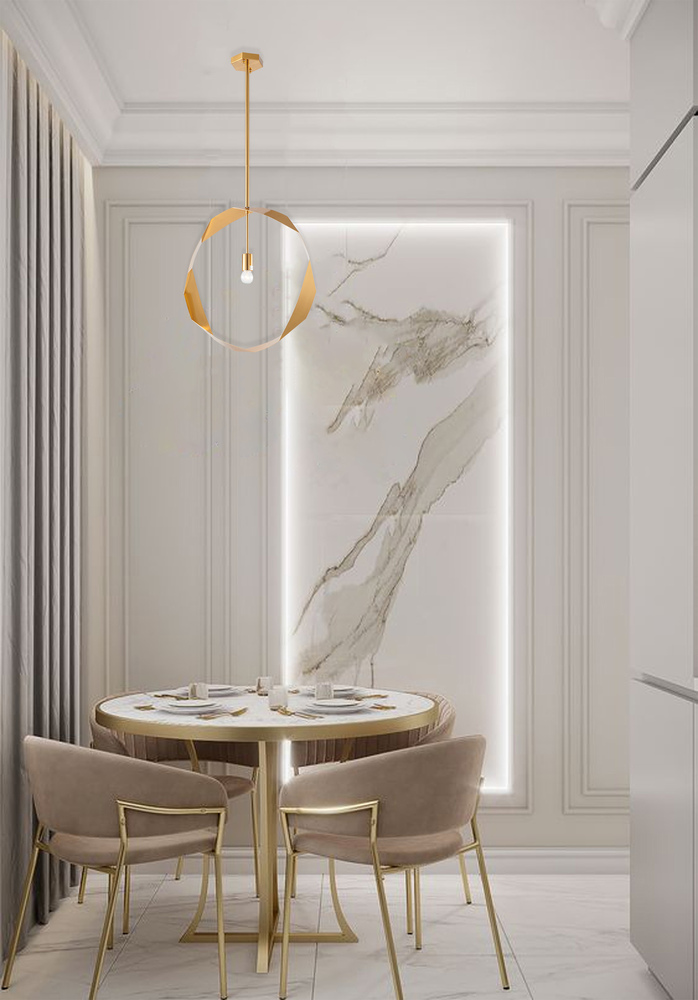 This single pendant is in an antique brass finish. The frame is made out of metal, and it comes with a clear crystal shade. The adjustable rod link makes this fixture suitable for most ceiling heights.