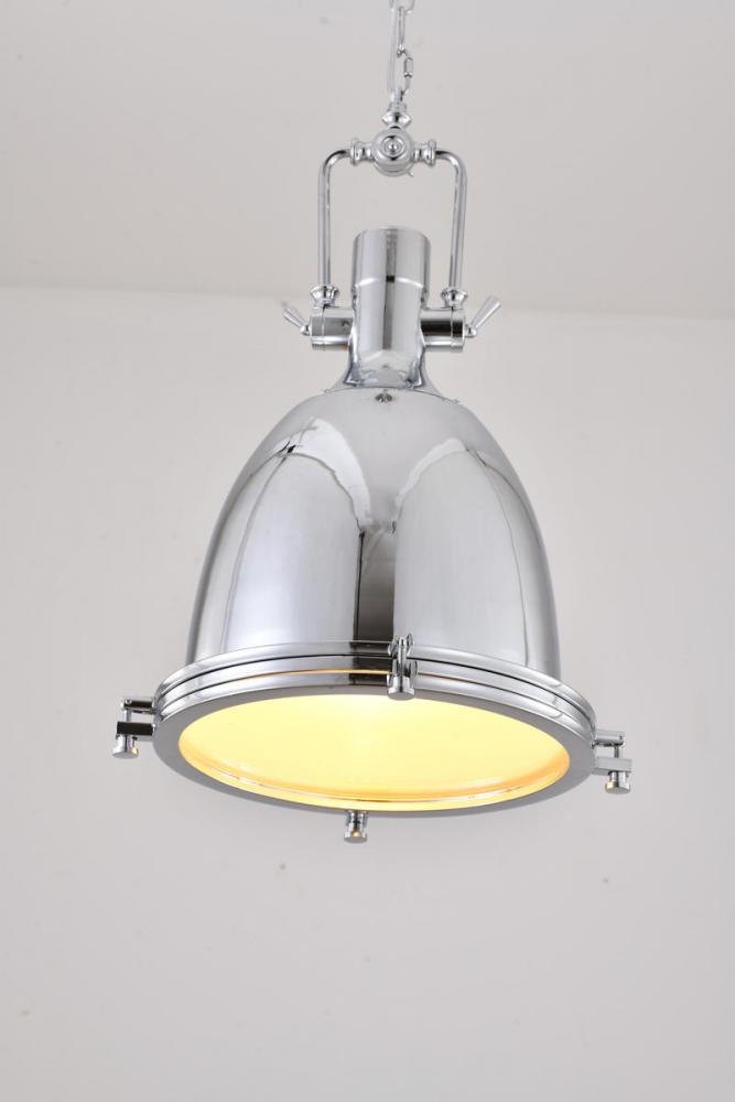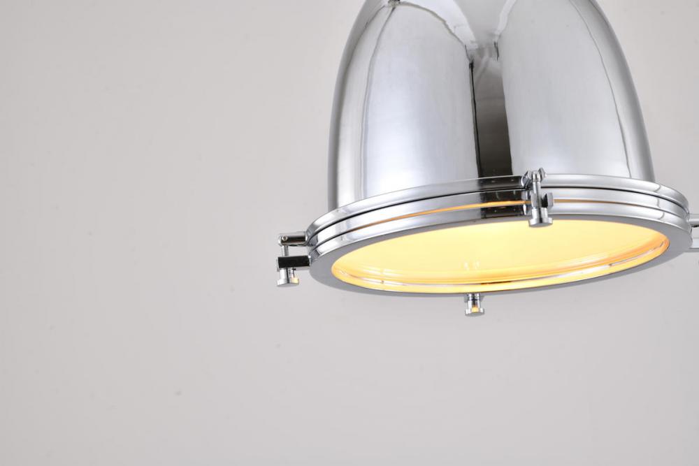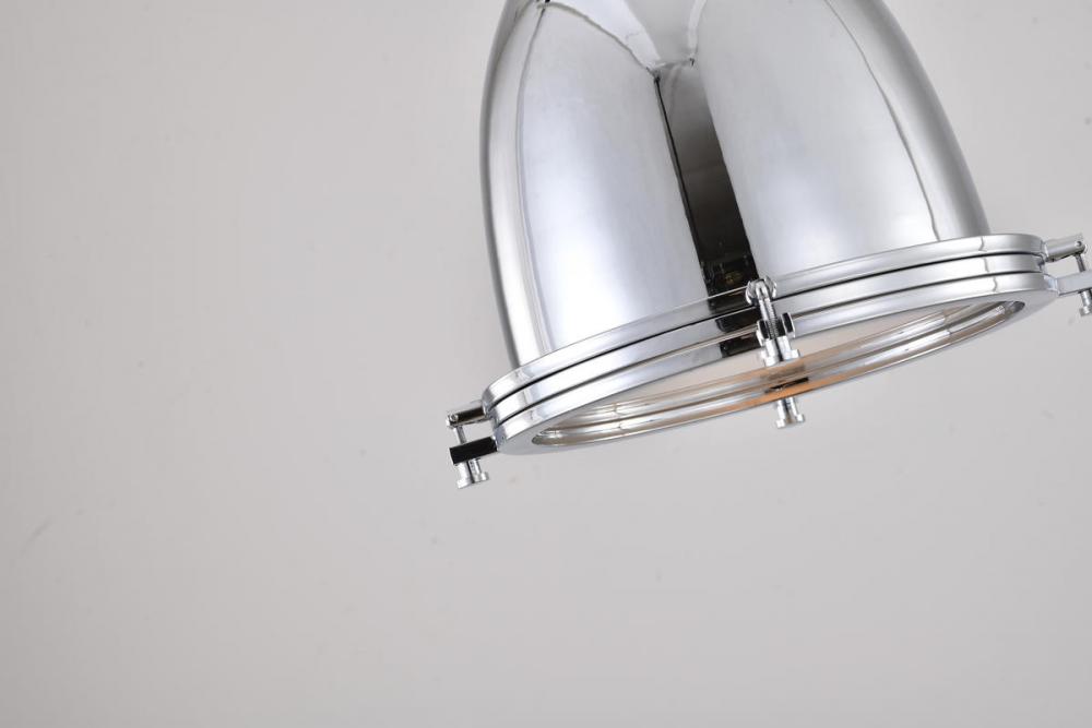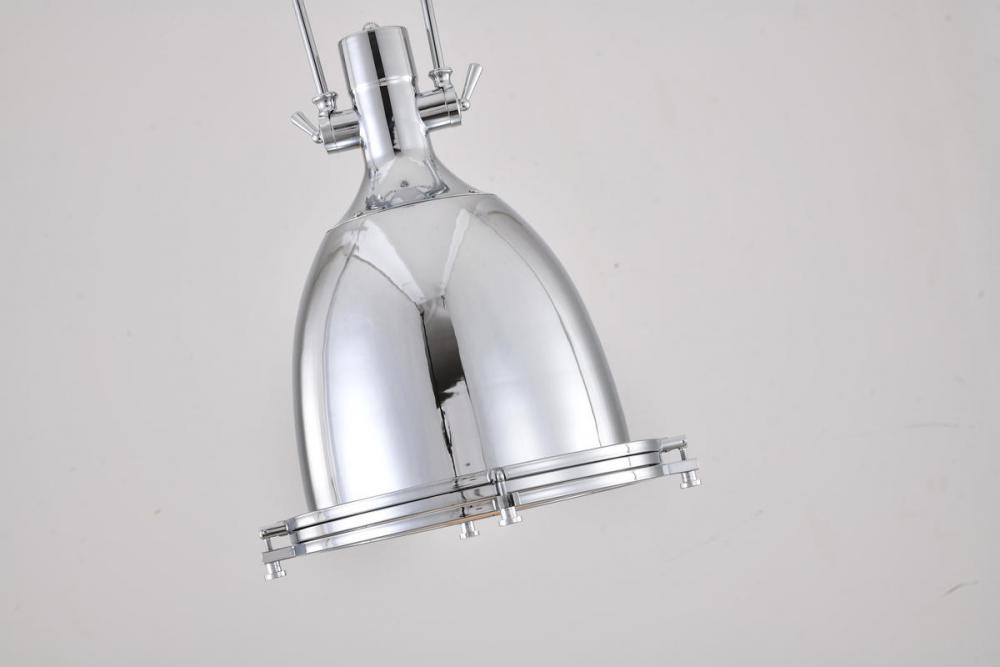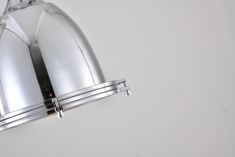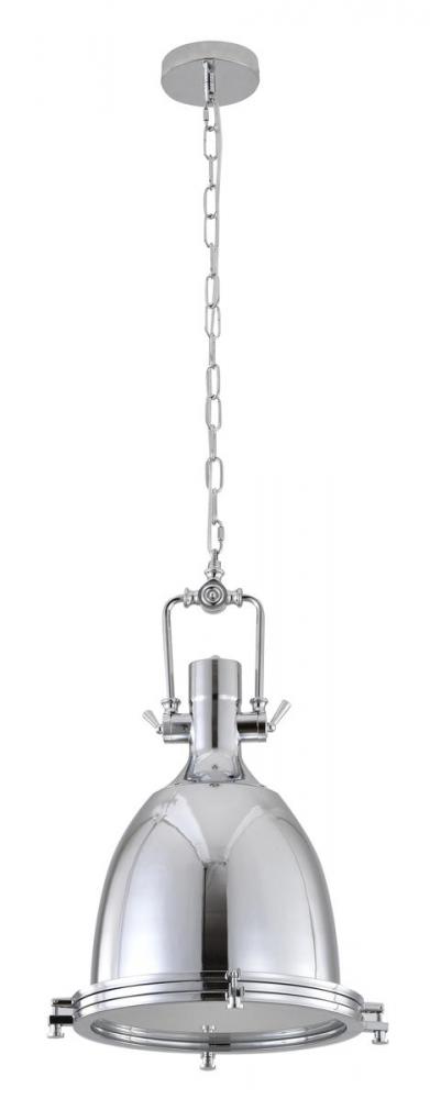 This exquisite single pendant lighting is in a chrome finish. The frame is made out of metal, and it comes with a clear glass shade on the bottom. The adjustable chain link makes this fixture suitable for most ceiling heights.