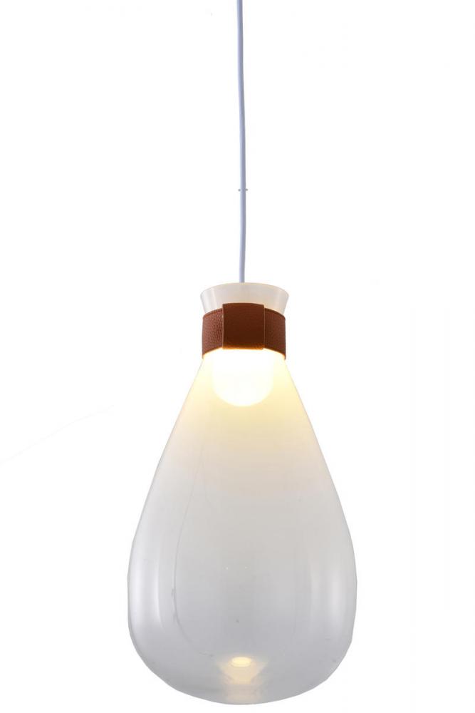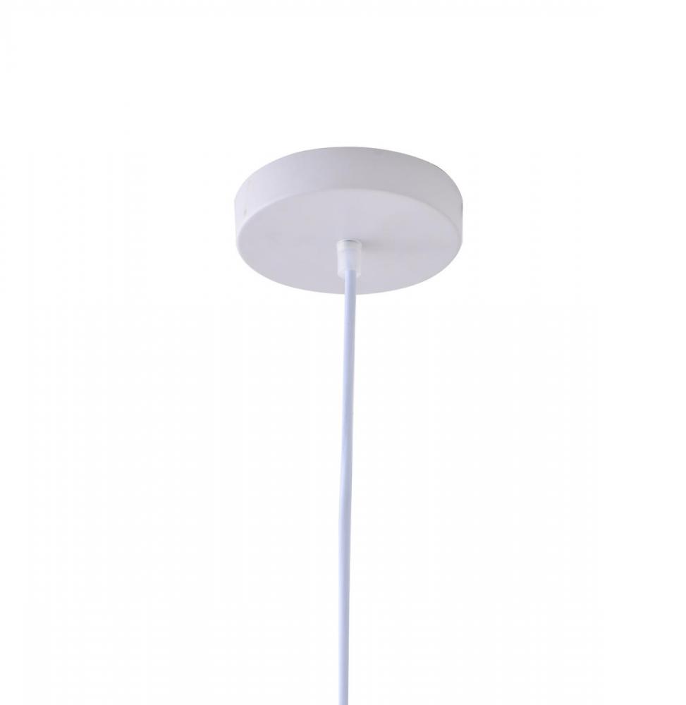 This exquisite pendant is in a white finish. The frame is made out of metal, and it comes with a white glass jar shade. The adjustable cord link makes this fixture suitable for most ceiling heights.