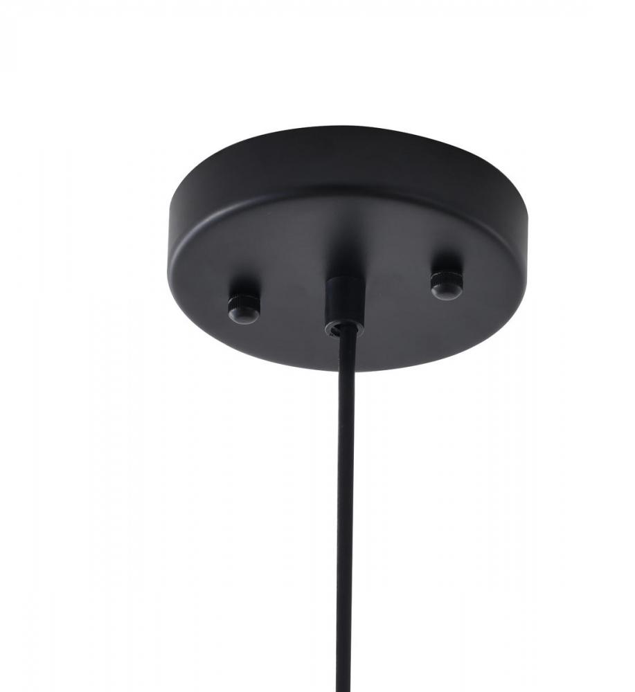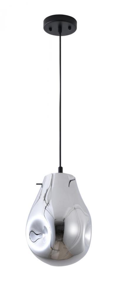 This pendant light is in a silver finish. The frame is made out of metal in black color, and it comes with a silver jar glass shade. The adjustable cord link makes this fixture suitable for most ceiling heights.