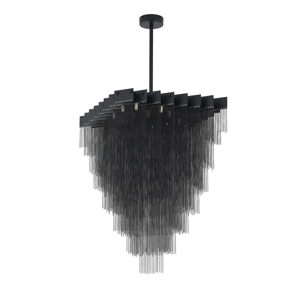 16-Light Satin Black Chandelier With Hanging Aluminum Chains