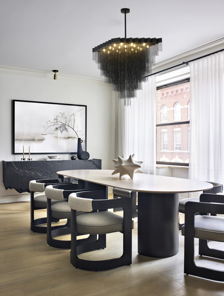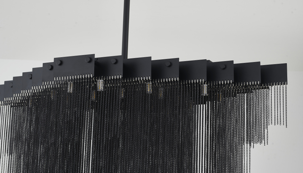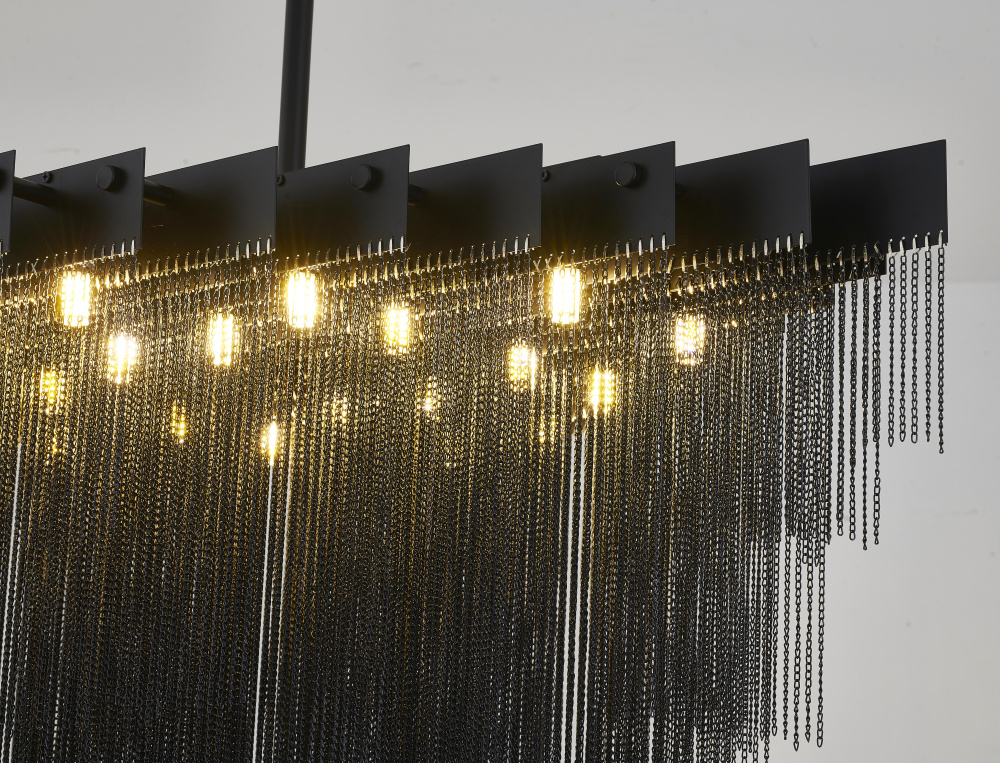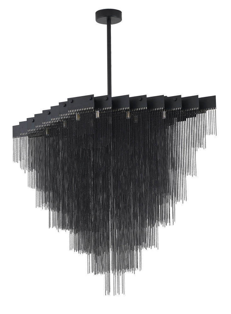 20-Light Satin Black Chandelier With Hanging Aluminum Chains