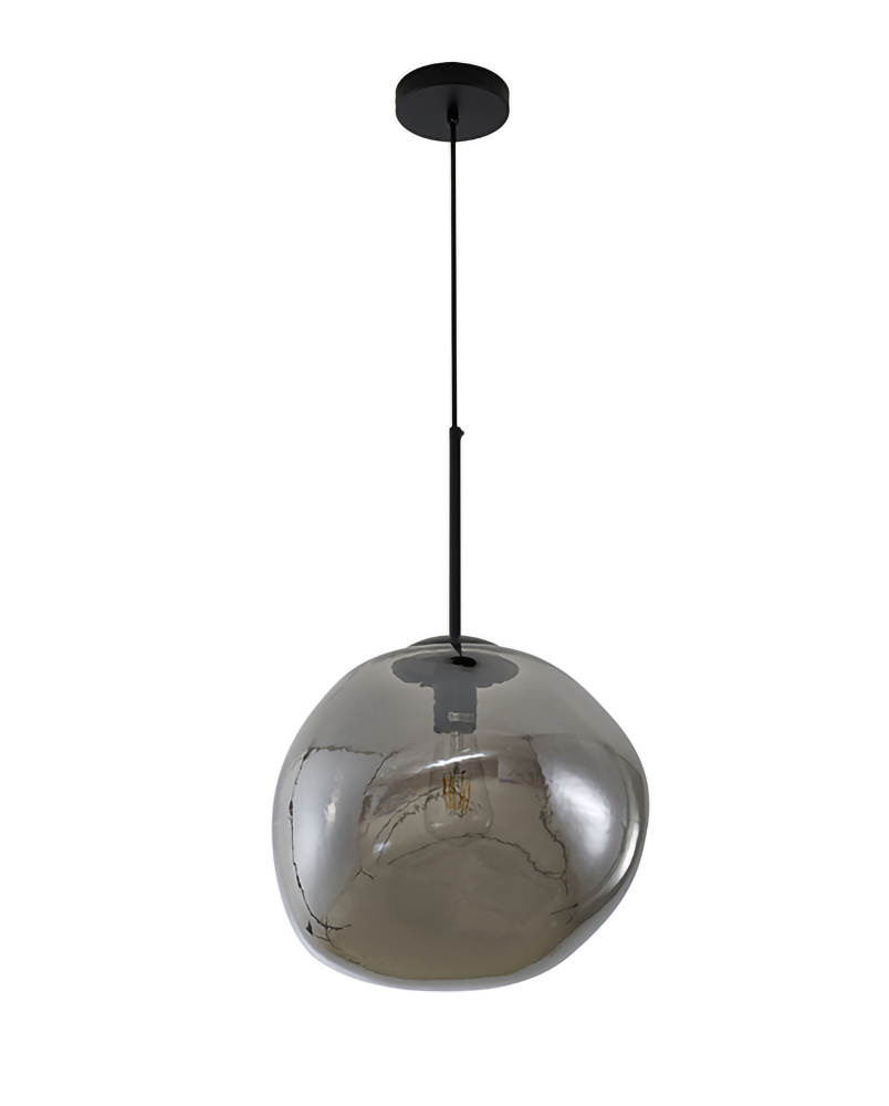 This traditional pendant is a unique and stylish lighting fixture that measures 16 inches in diameter and 14.5 inches in height. It features a satin black hardware and a wavy smoked glass shade, giving it a distinctive and eye-catching appearance. The pendant is designed to be suspended from the ceiling and is compatible with a standard E26 socket, accommodating a 40-watt bulb (Bulbs Not Included). Its sleek and modern design makes it an excellent choice for bedroom, living room, dinning room, or hallway.